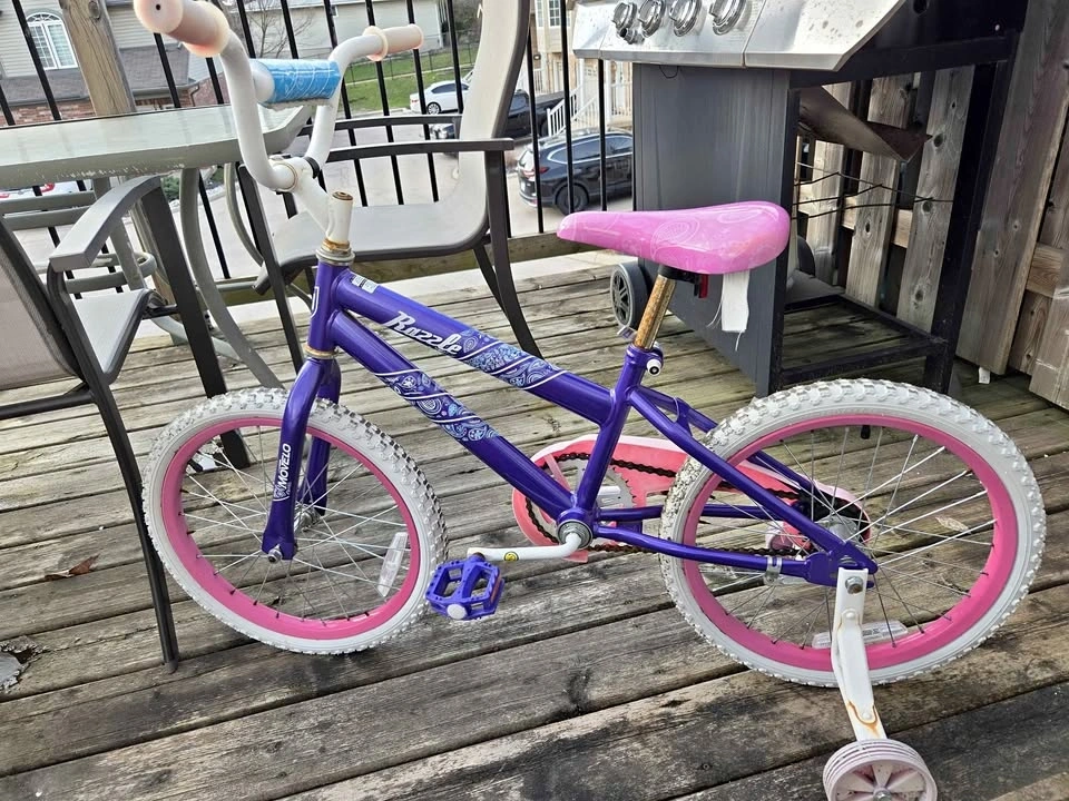 This bike has spent 2 winters on a deck. The chain is rusty as are other parts of the bike. The tires need air. Amazingly the pedals and brakes still work, it's too small for my daughter now and I just want it gone.