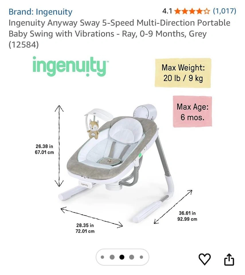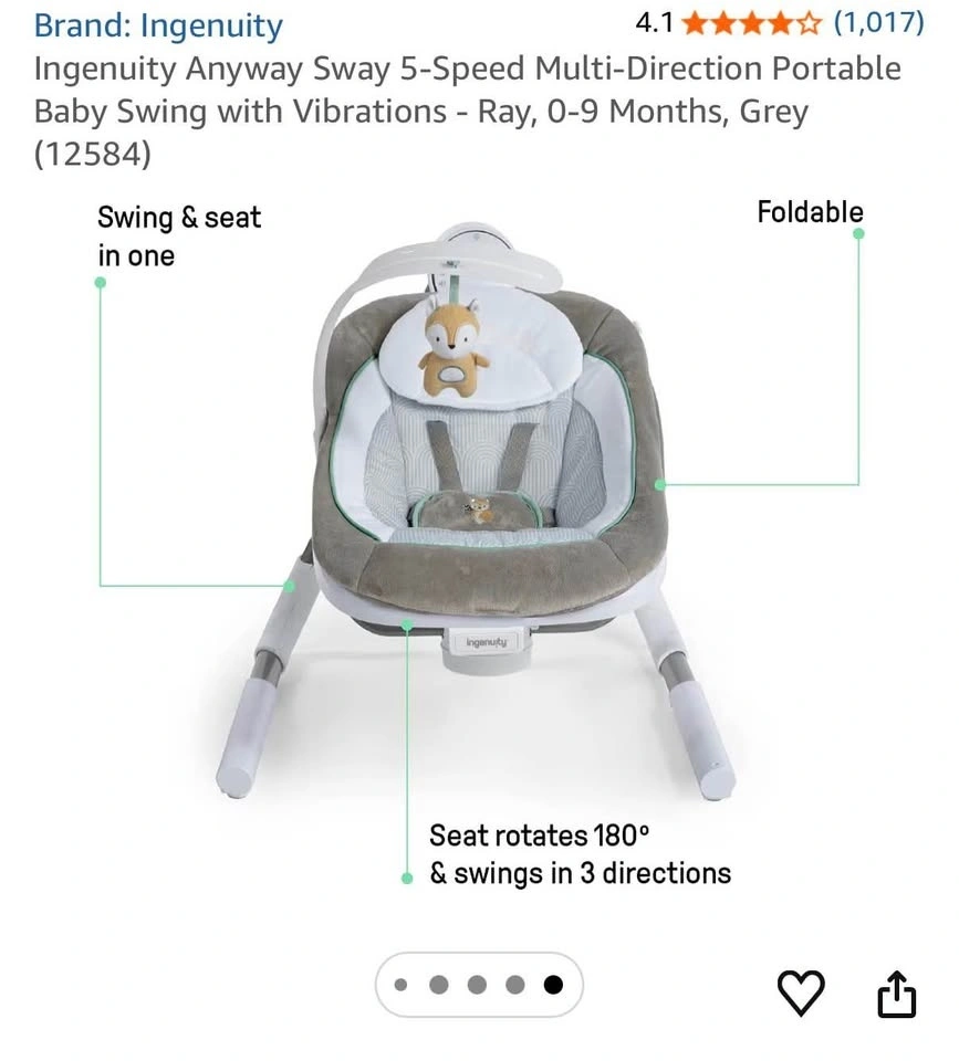 Selling our baby swing as our baby has already grown out of it. Honestly, it was barely used — she’s a total “hold me mommy” baby and preferred being carried in a baby carrier most of the time.