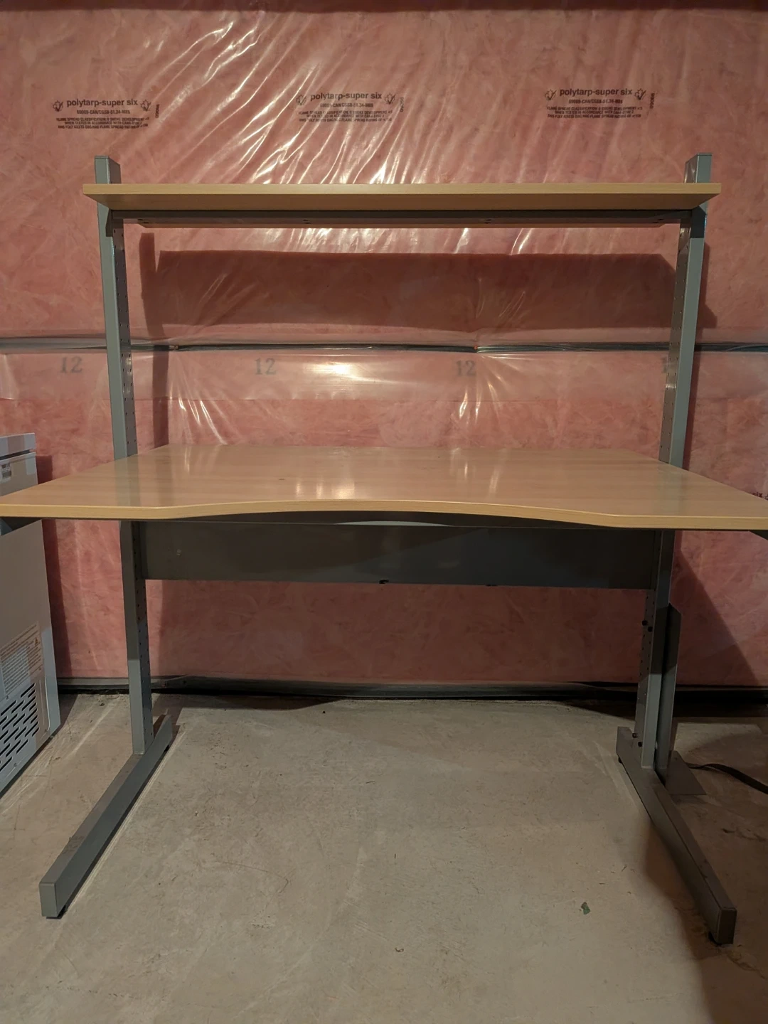 Selling a heavy duty industrial desk with an attached adjustable height shelf. It's in good condition and ready for a new workspace! Perfect for a home office or study area.