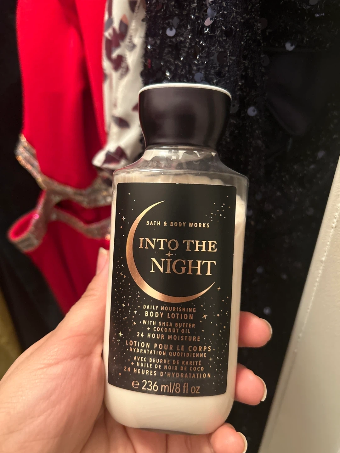 Bath & Body Works Into the Night Daily Nourishing Body Lotion. It's made with shea butter and coconut oil for 24-hour moisture. This lotion provides deep hydration for your skin.