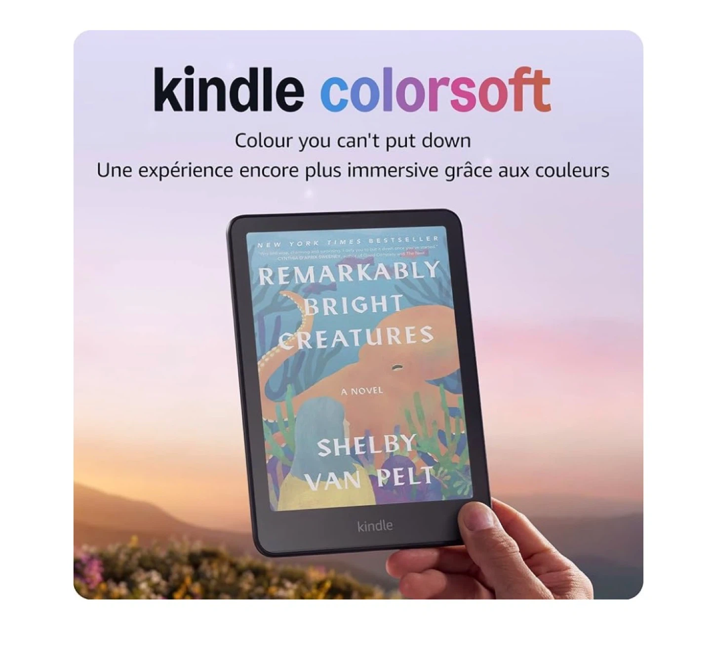 Kindle Paperwhite Coloursoft e-reader with a 7" glare-free display. Includes USB-C charging cable. Adjustable warm light for comfortable reading. Black colour.