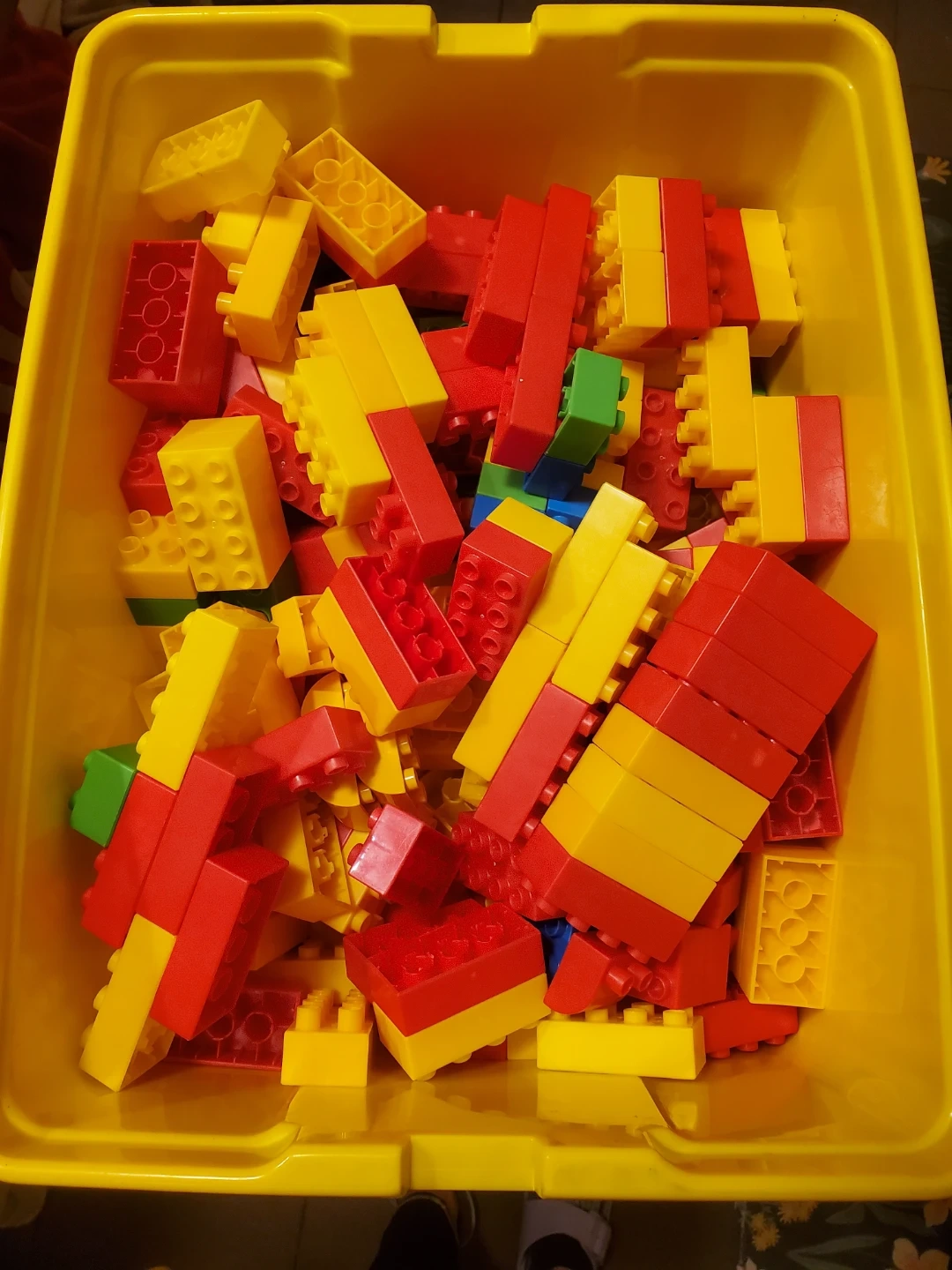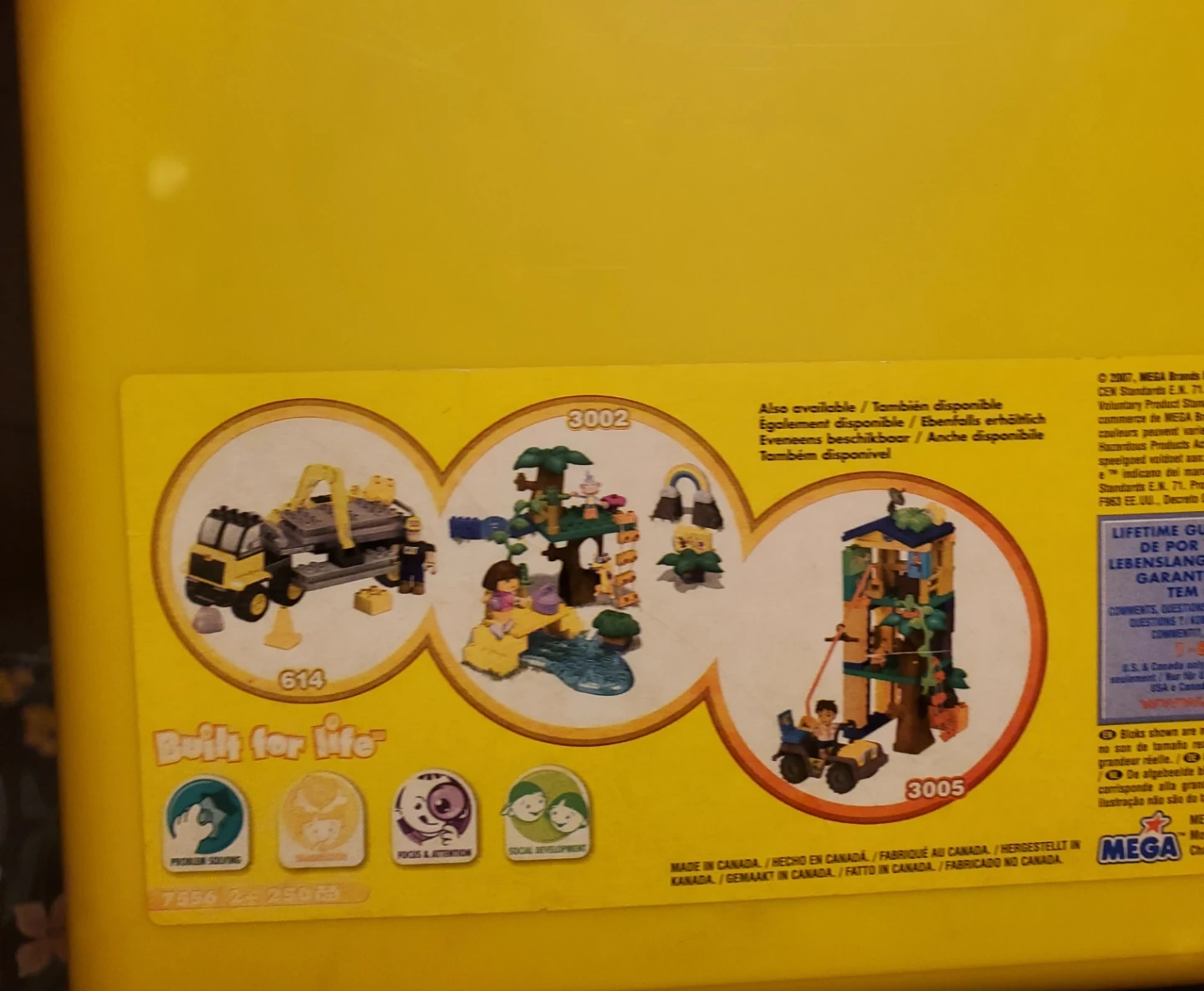 This Mega Bloks set includes a variety of building bricks in red, yellow, and blue. It's designed for ages 2 and up, encouraging creativity and skill development. The set comes in a yellow storage bin for easy cleanup and organization.