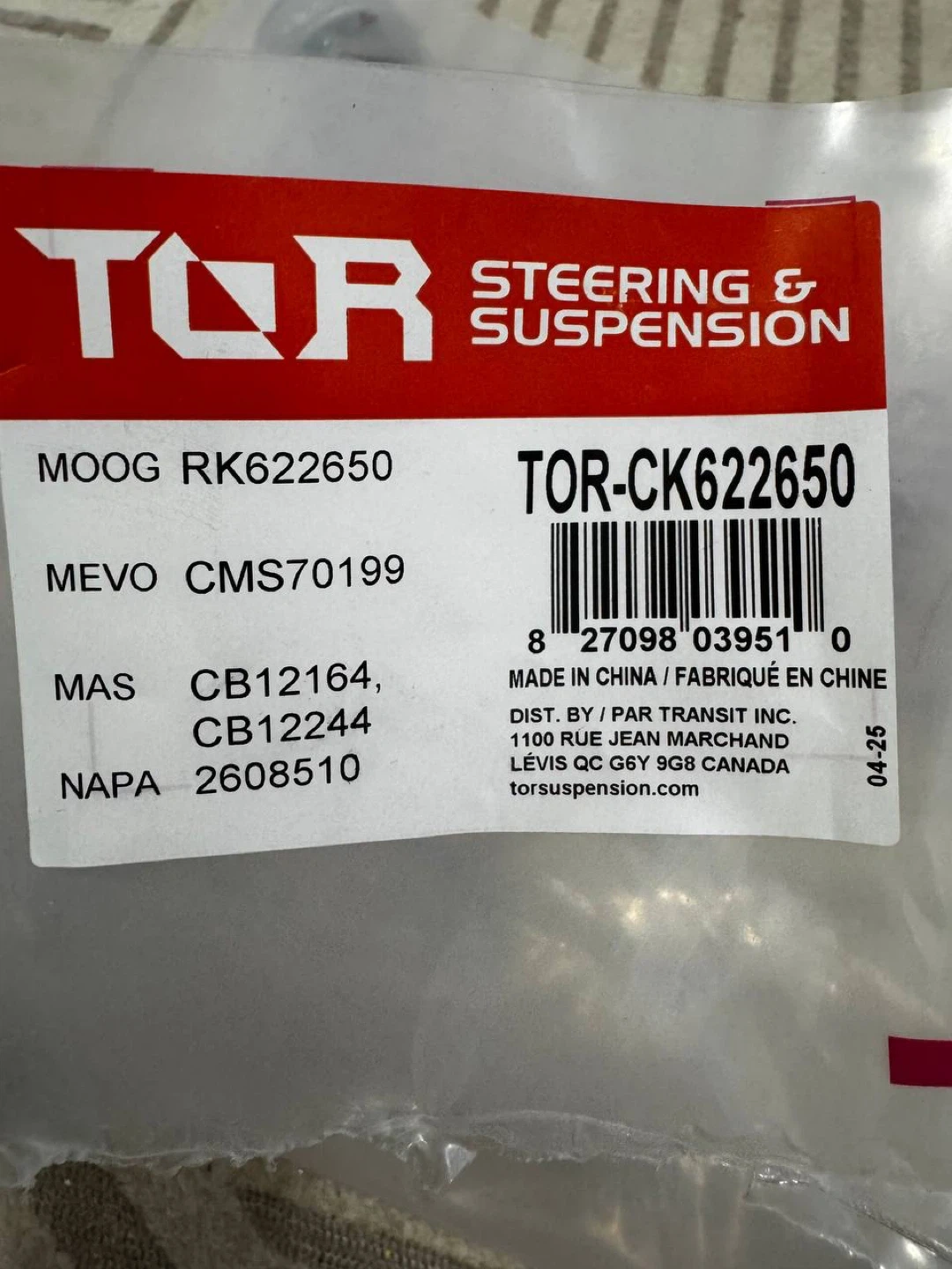 • Brand: TOR Steering & Suspension