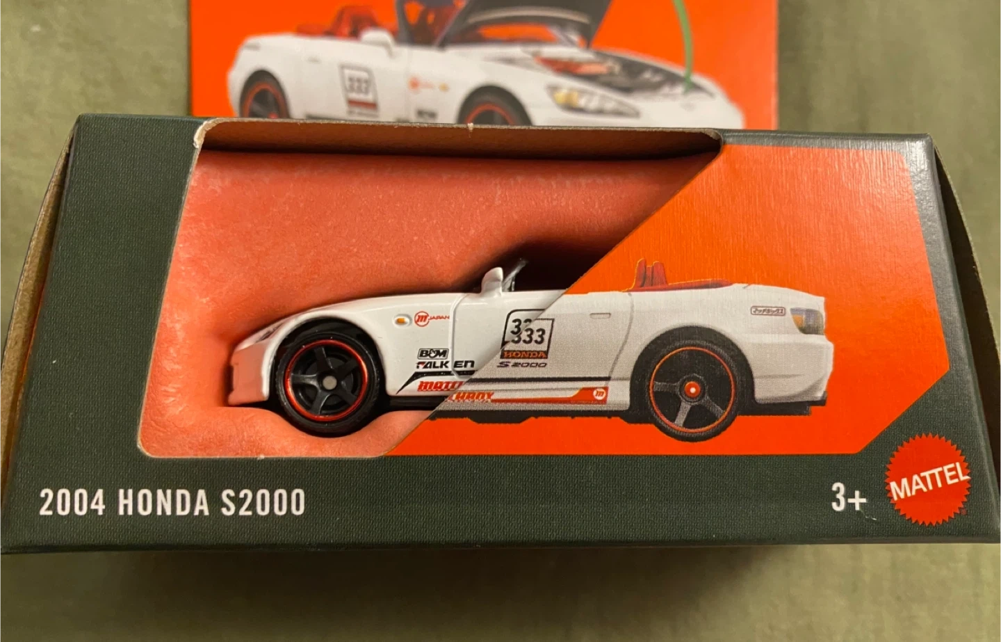 White 2004 Honda S2000 Matchbox Moving Parts diecast car. Made from a minimum of 70% ISCC-certified plastic. It's a detailed collectible model.