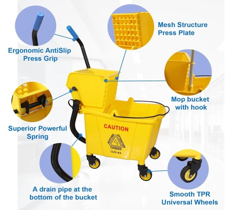 Commercial Mop Bucket with Side-Press Wringer & Mop