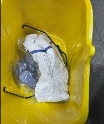 Commercial mop bucket with side-press wringer combo on wheels, 35QT, yellow. Includes one heavy duty industrial mop. Let me know if you're interested!