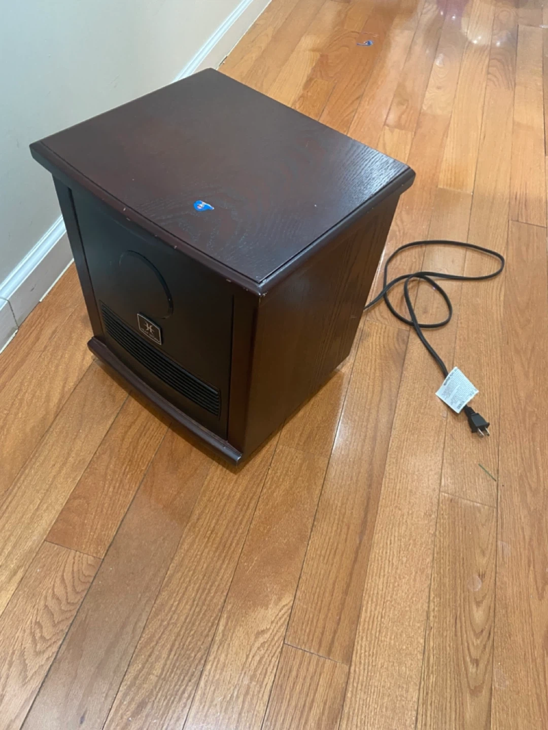 Selling a Heat Storm portable space heater. It's in great condition and ready to keep you warm! It has a dark brown wood-like finish. Remote is missing