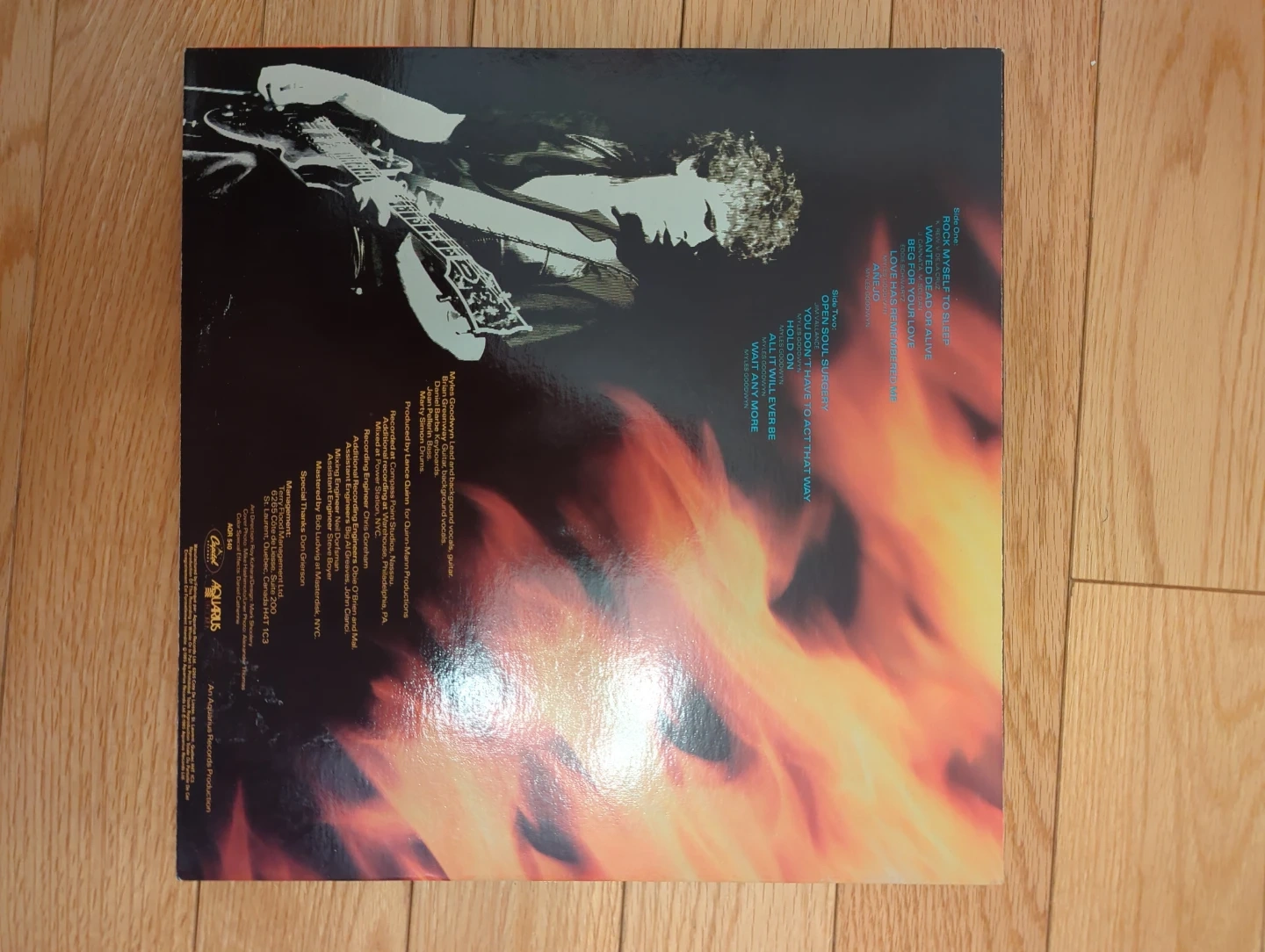 This is the "Walking Through Fire" vinyl record by April Wine. It features tracks like "All It Will Ever Be" and "Wait Any More".