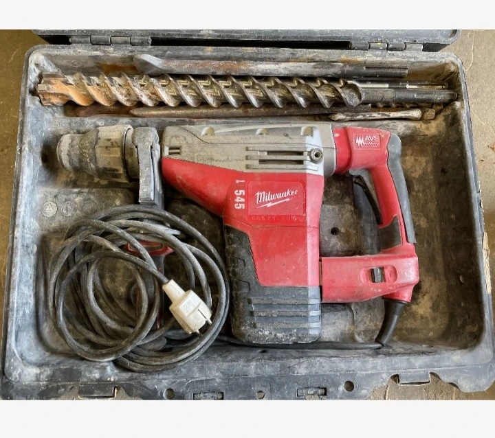 This is a Milwaukee SDS rotary hammer drill, model 545. It comes with various drill bits and a chisel bit in its case. It's a powerful tool for demo$@@№-lition and drilling into concrete. The drill even used goes for 1100 and the bits go for 250 each piece and there is 4 drill bits your saving 1300 with this buy. Selling to first come