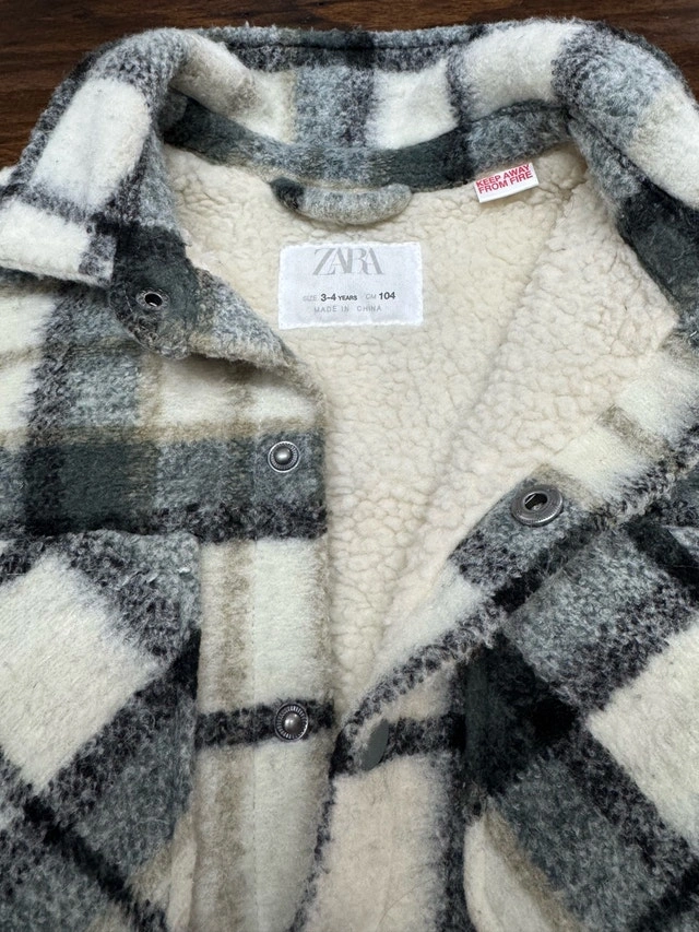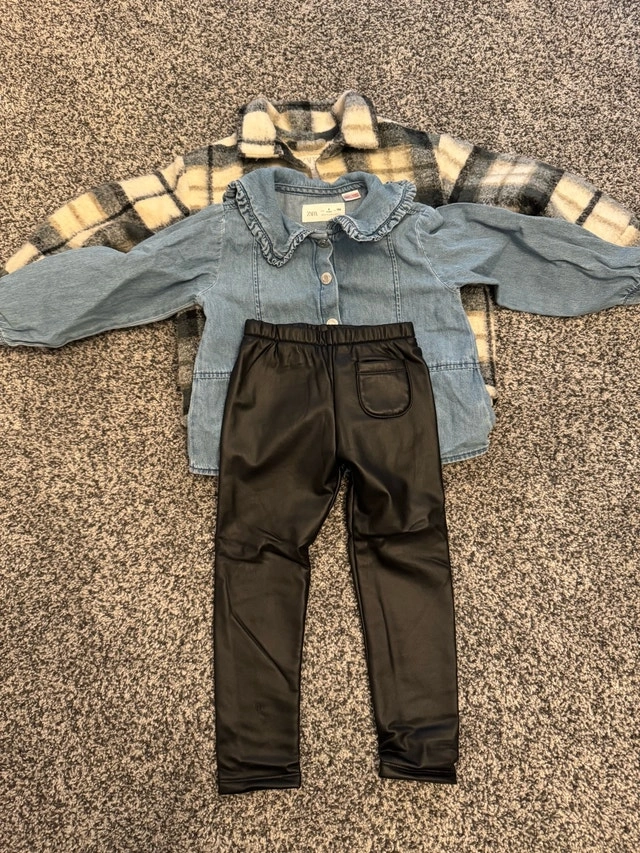 This is a cute and stylish Zara girls' clothing lot, size 4, featuring a variety of pieces for versatile outfits. The lot includes cozy sweaters, a denim shirt, faux leather leggings, a trendy plaid shacket, a fun dress and a cute matching top and bottom set. These pieces are in used condition, showing gentle wear but with lots of life left, perfect for mixing and matching to create adorable looks for your little one. Here are the included items: Denim shirt, Faux Leather Leggings, Plaid Shacket, Dress, Top and bottom sets. Cash accepted.