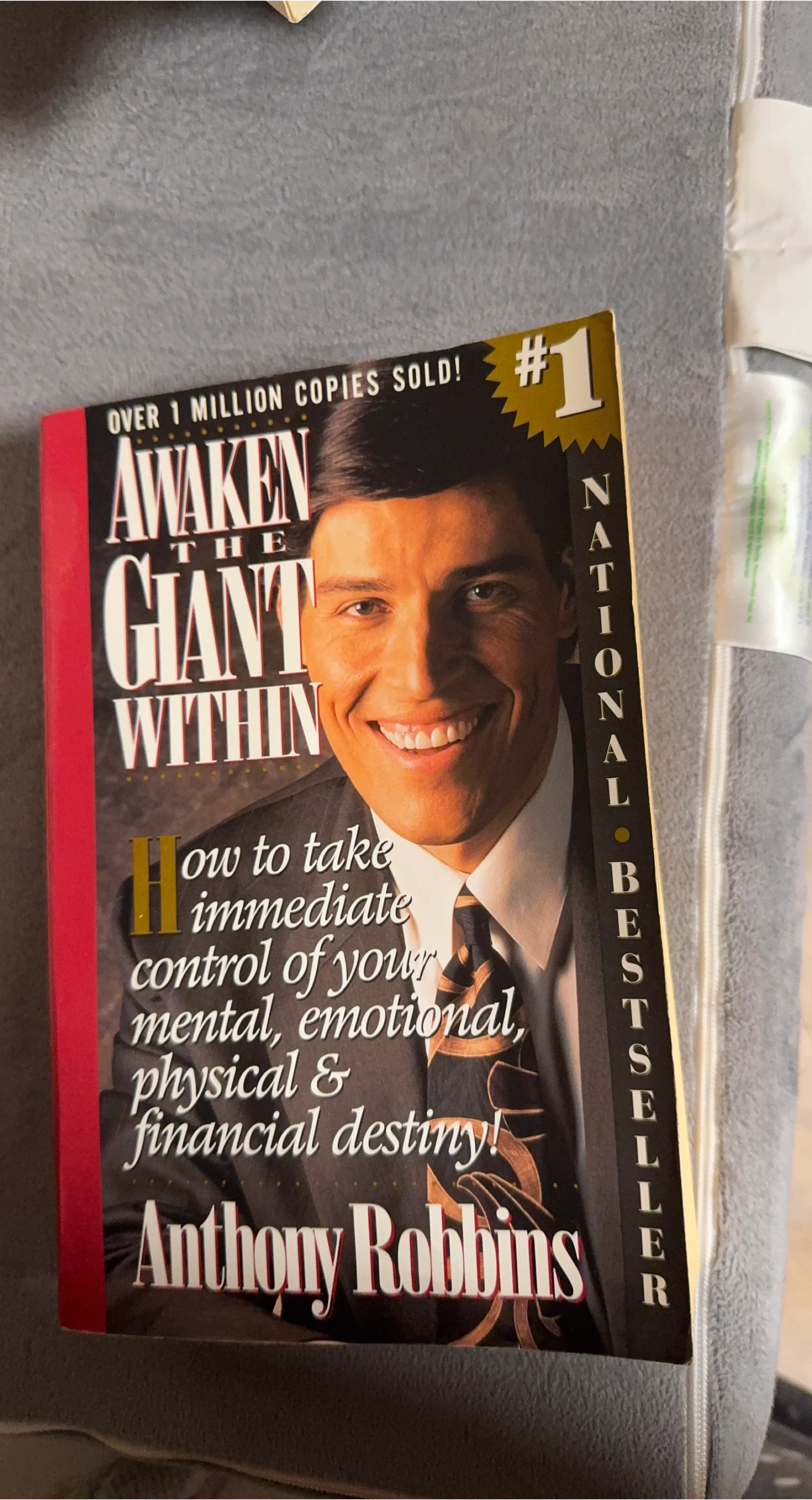 This is Anthony Robbins' book, Awaken the Giant Within. It's a national bestseller with over 1 million copies sold. The book teaches how to take immediate control of your mental, emotional, physical, and financial destiny.