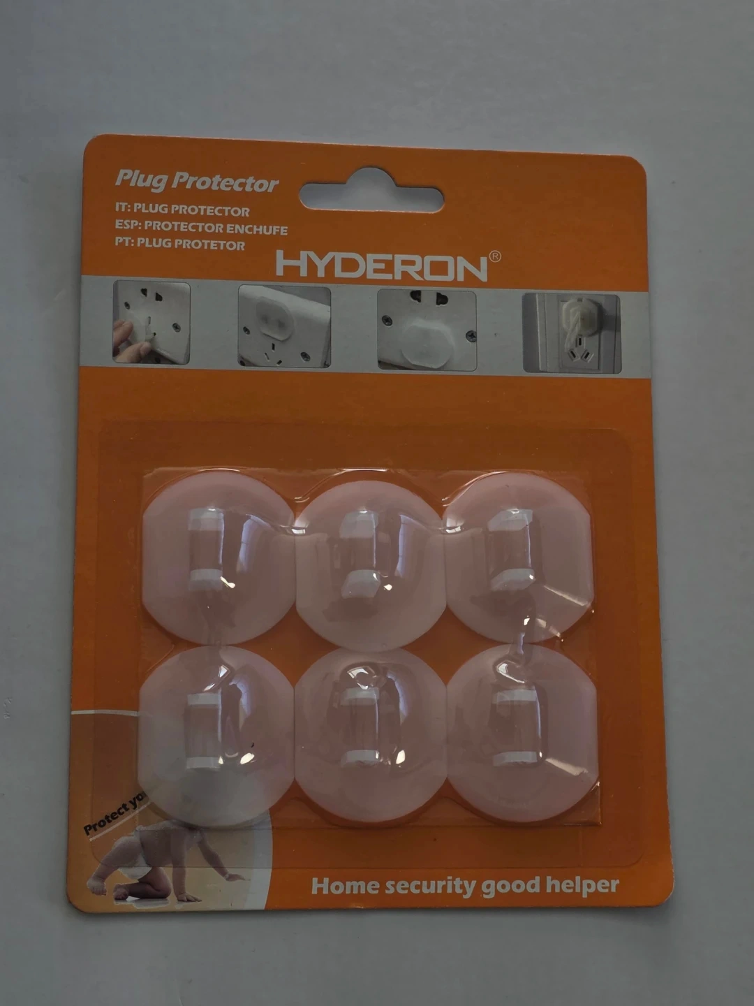 These HYDERON plug protectors come in a 6-pack. They are designed to protect outlets from being touched.