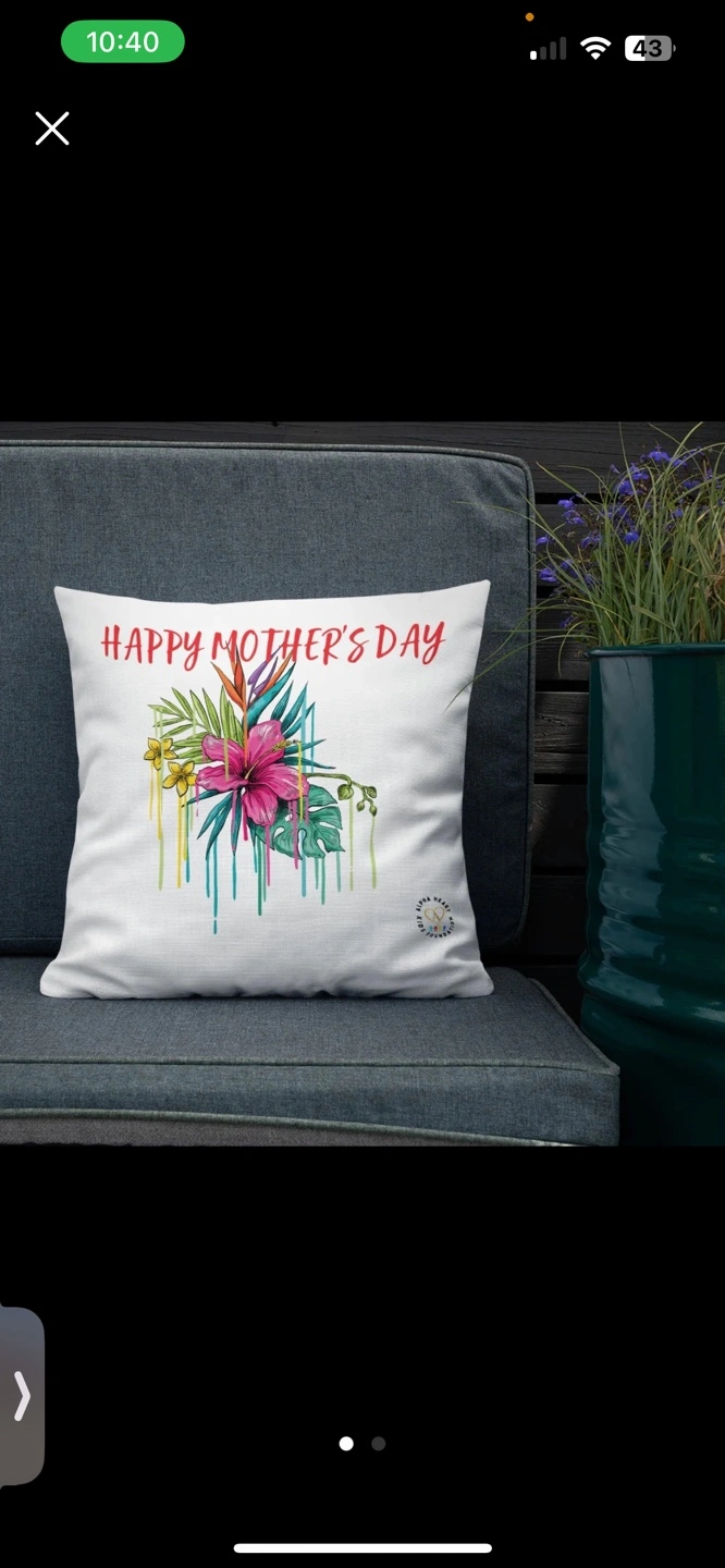 Gorgeous throw pillow featuring a vibrant tropical floral design and the message 'Happy Mother's Day'. Perfect Mother's Day gift. Soft, comfortable fabric. Great for adding a pop of colour to your living space.