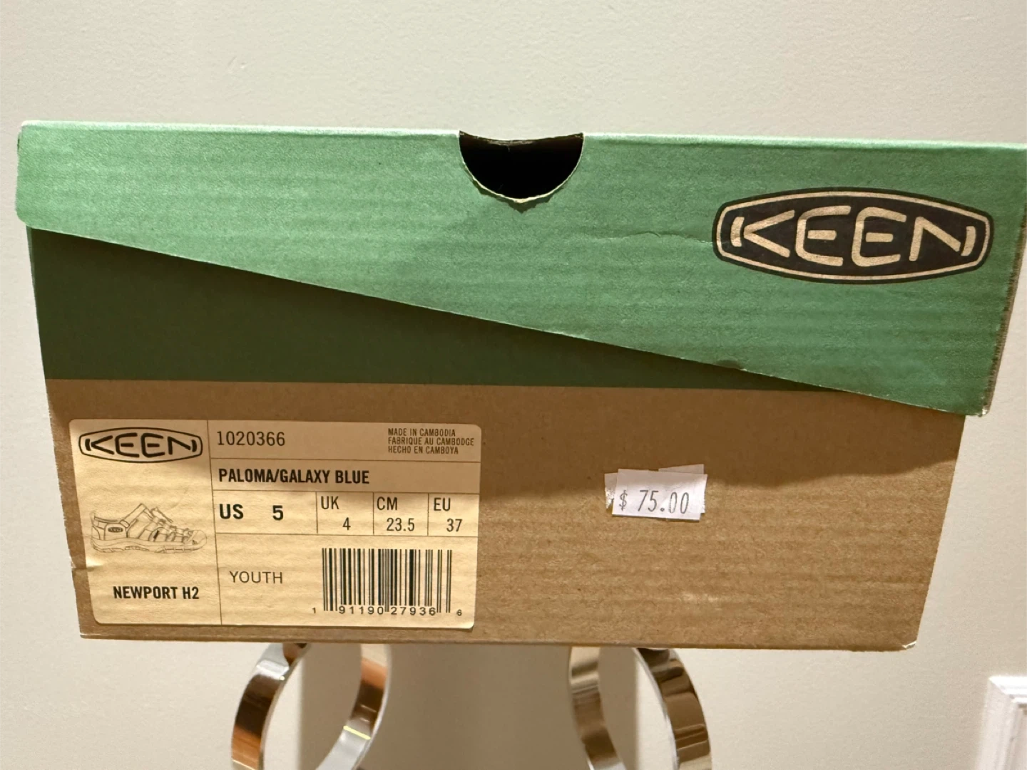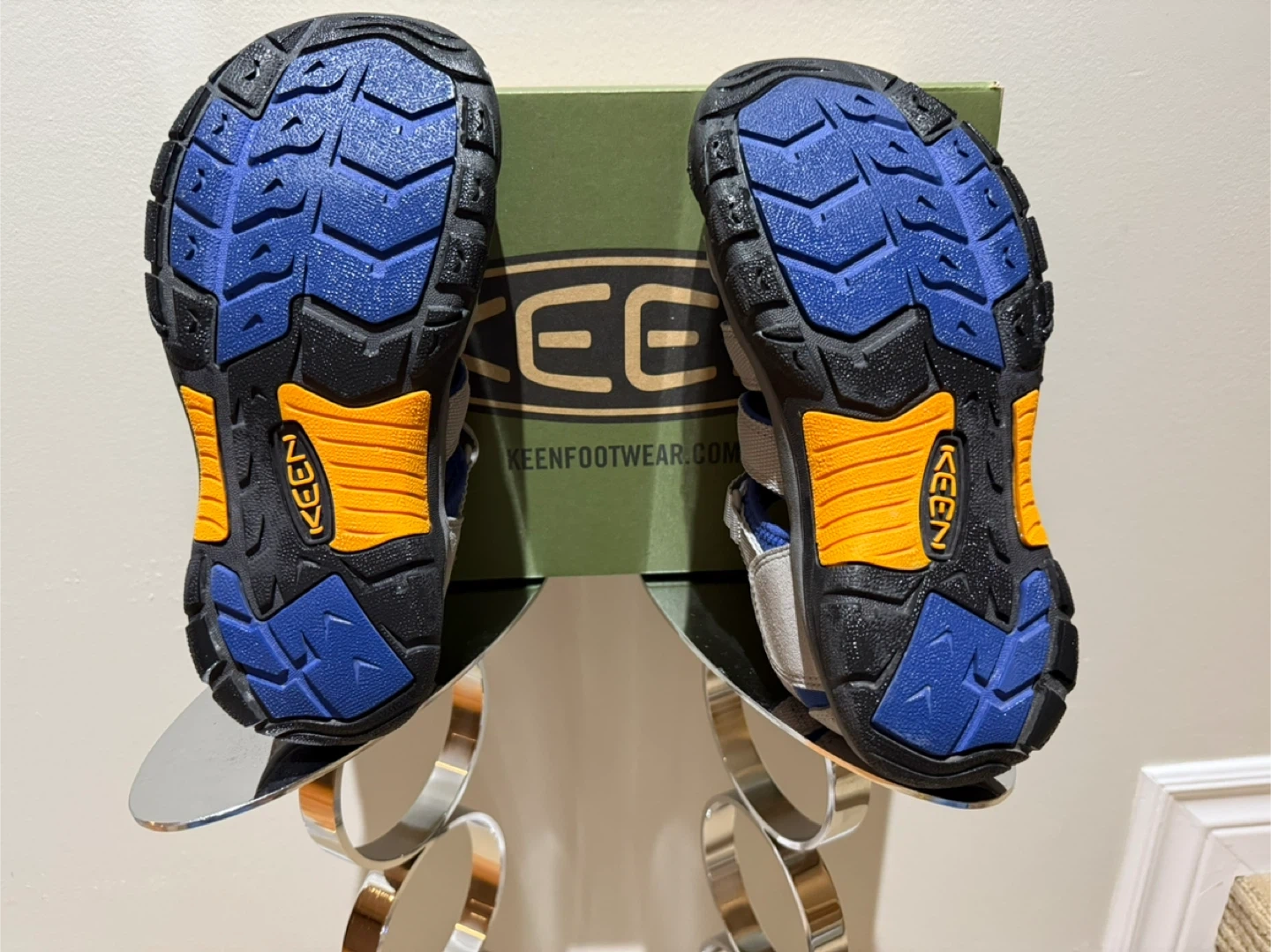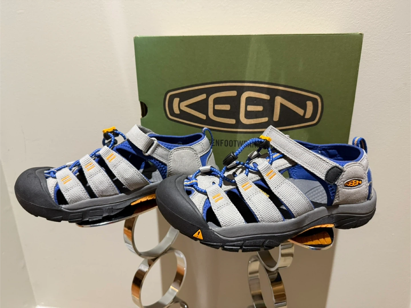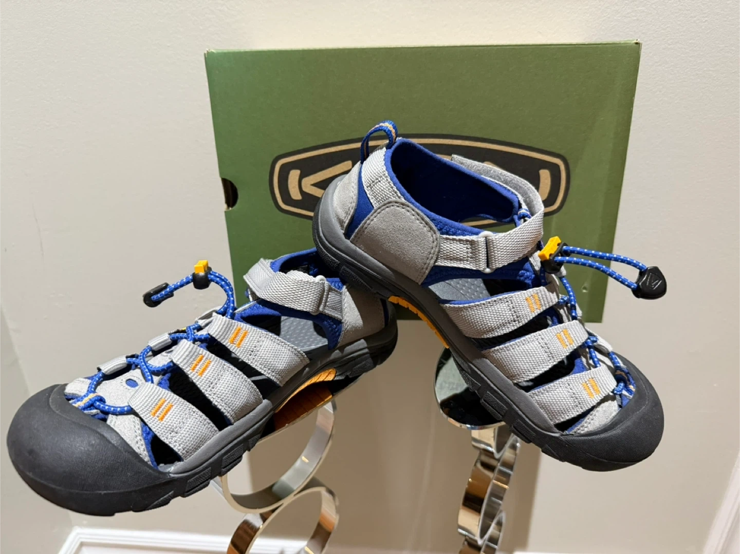 Selling a pair of Keen Newport H2 youth sandals in size 5 US. The colour is Paloma/Galaxy Blue. They come with the original box! Retails for $75