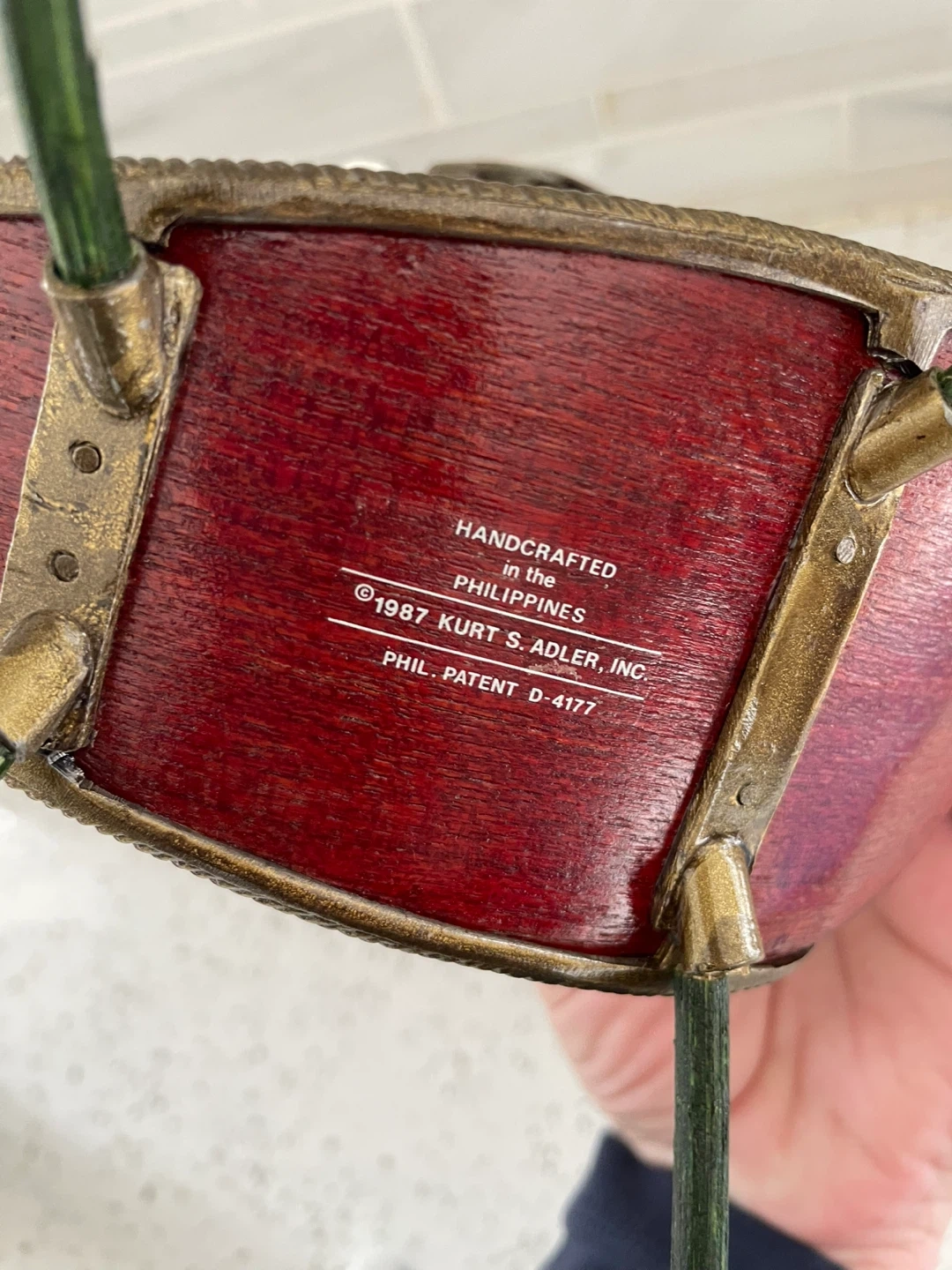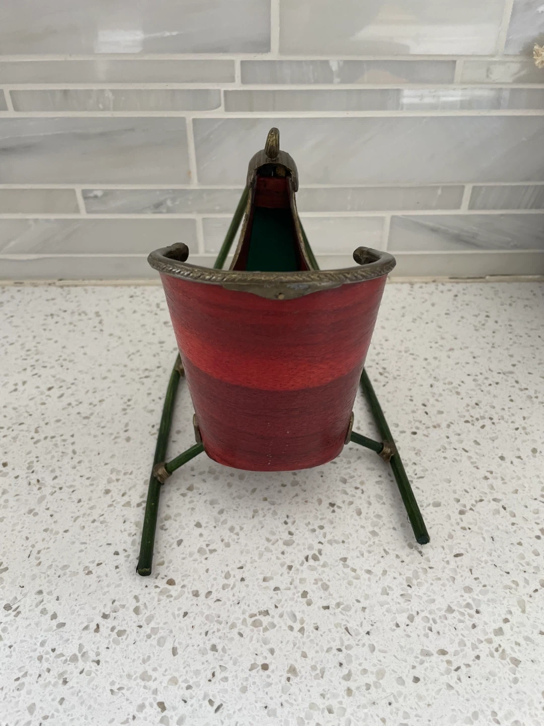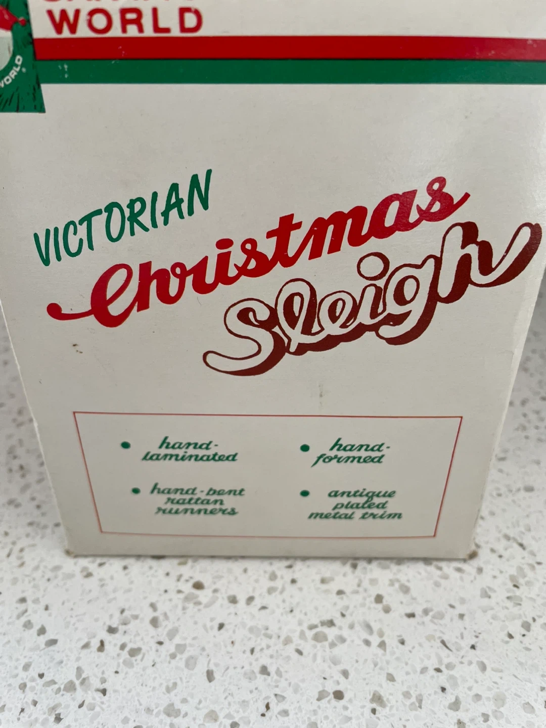 This is a charming Victorian Christmas Sleigh decoration. It features hand-laminated wood, hand-bent metal runners, and antique-plated metal trim. It's perfect for displaying holiday treats or small gifts!