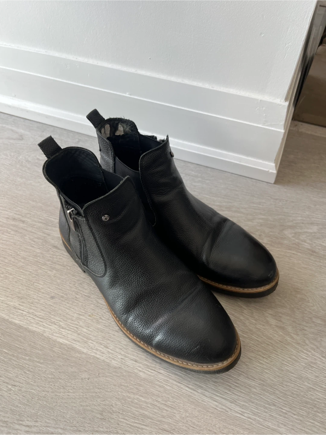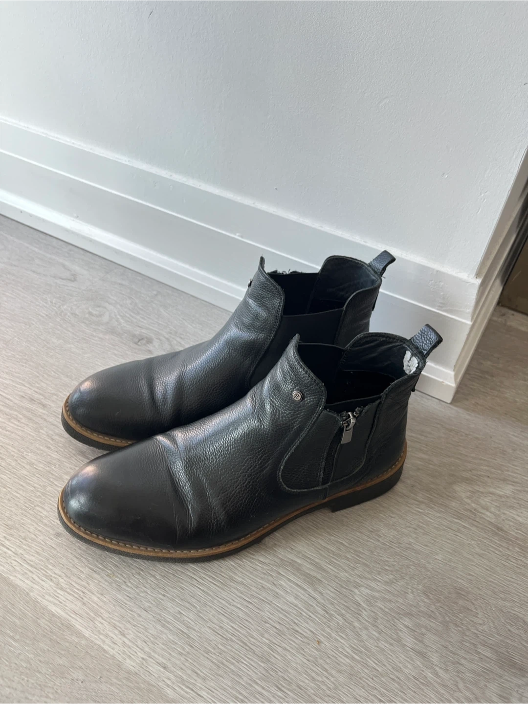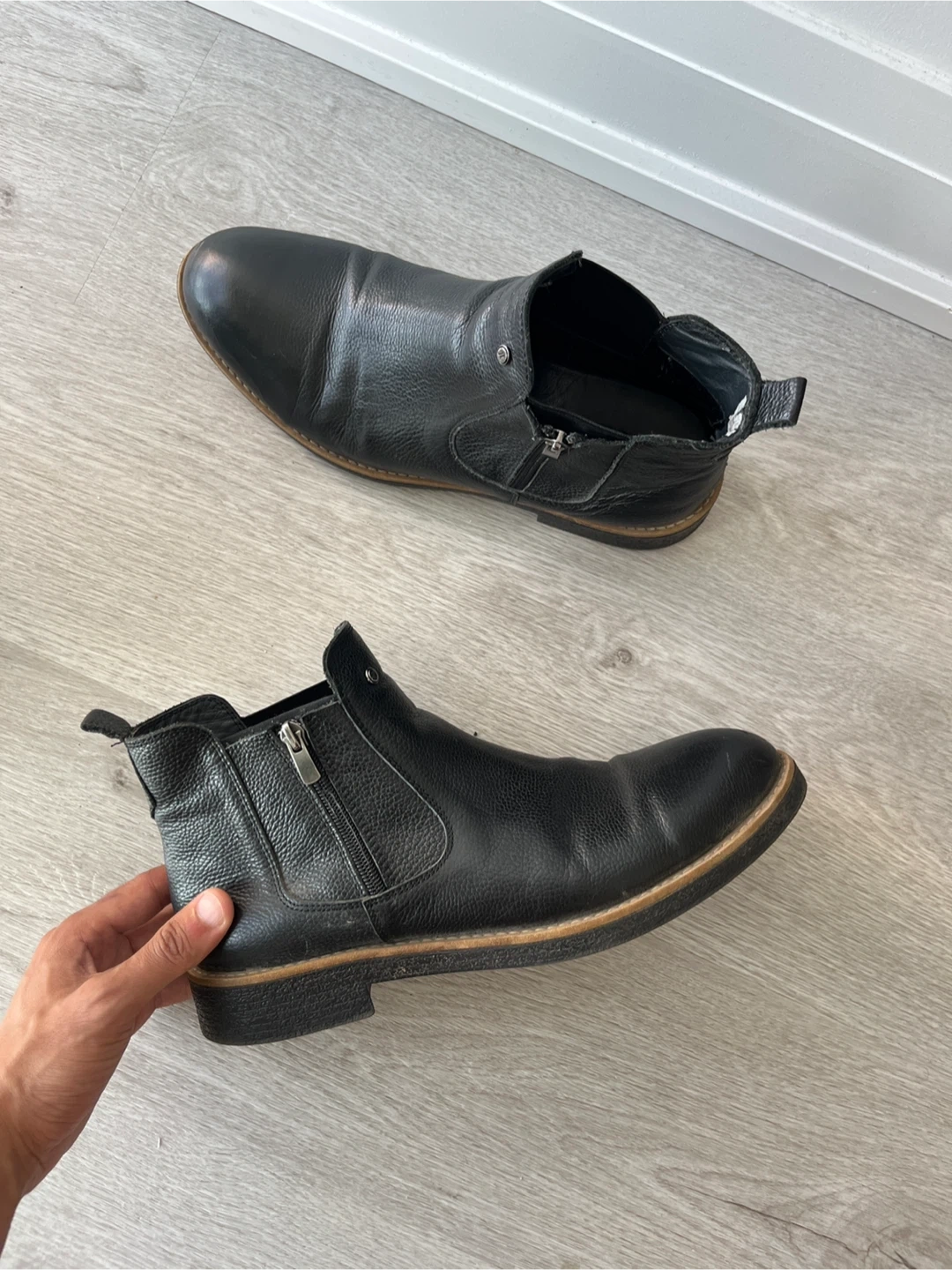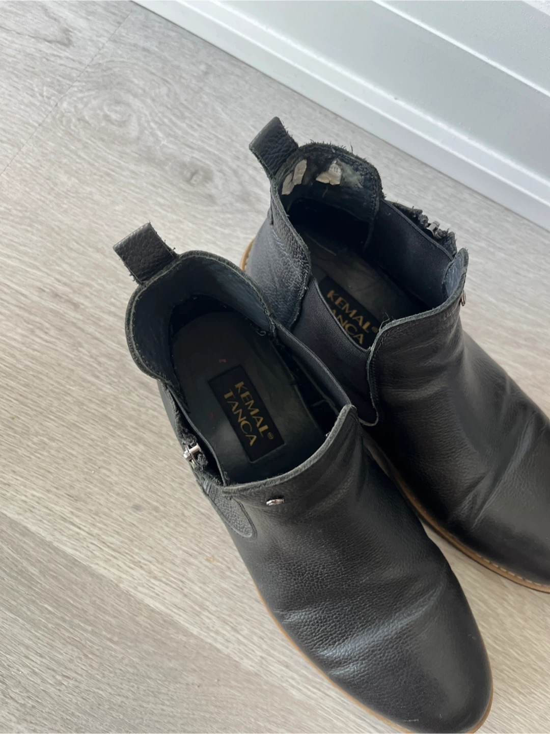 Selling a pair of Kemal Tanca Chelsea boots in black leather. They're in good condition and have a stylish, classic look. Perfect for everyday wear! Genuine leather, handmade in Istanbul.