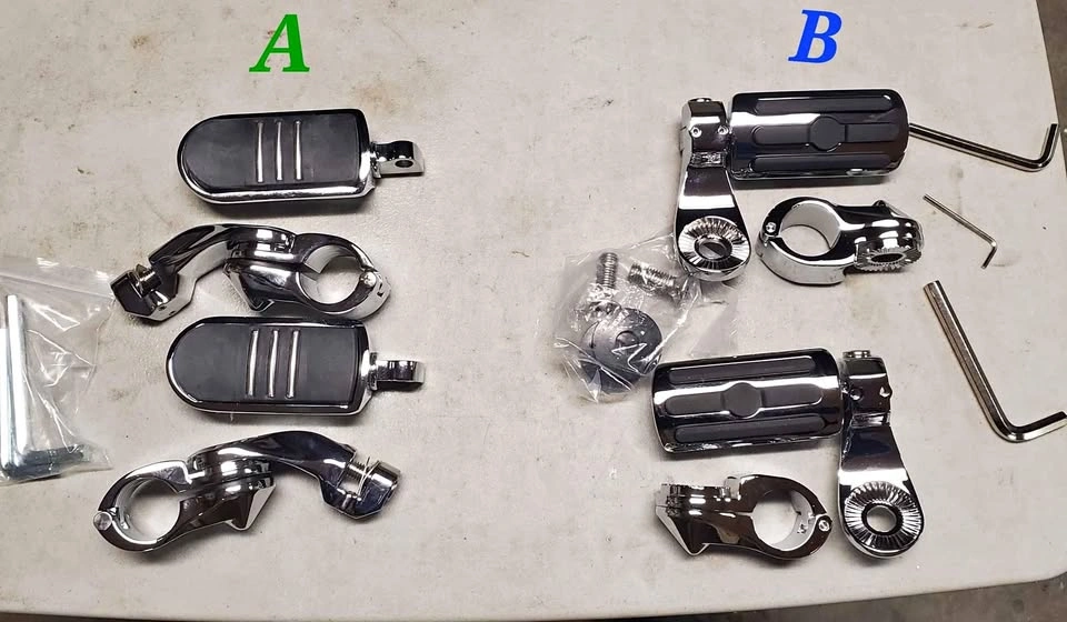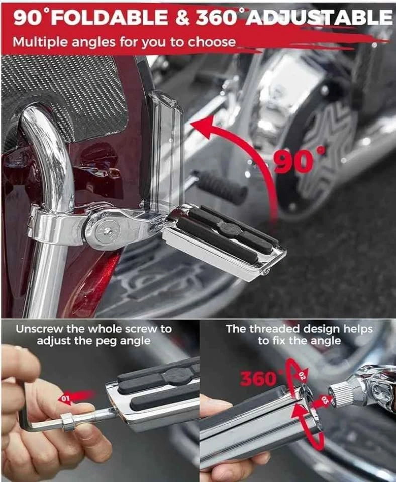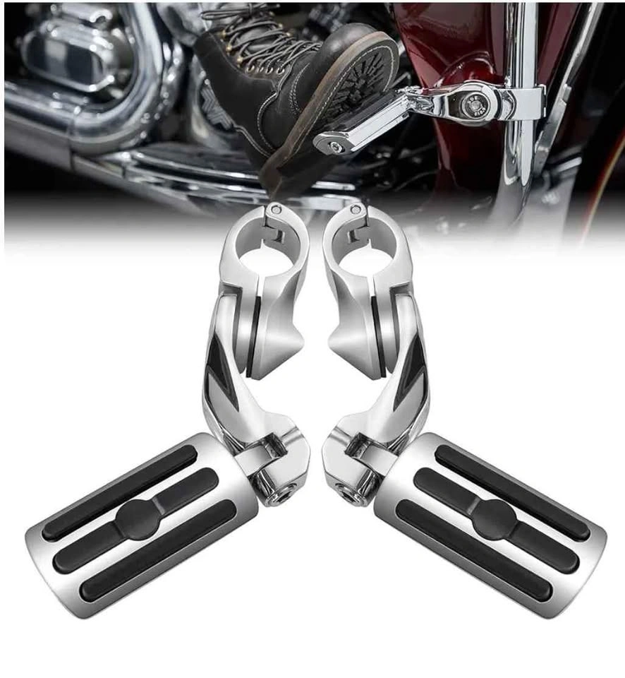 15ITEM B-$85 These Highway Foot Pegs Fit 1984-2023 Touring Models Electra Glide Road King Street Glide and other models with 1 1/4" Engine Guard Highway Bars. 【Upgraded Clamp】Using new molds to make standard diameter clamp jigs, making the clamp fit the engine guard bars tighter. The mounting clamp is 360 degree adjustable, and the locking design secures the peg at the desired angle. Skidproof engraved durable rubber surface. 【Relax Your Foot】The Highway Bar Foot Pegs Add a place to tilt your foot outward, make your foot more comfortable for a long ride. 【Package Includes】One pair of Engine Guard Highway Mount Foot peg (left & right sides)