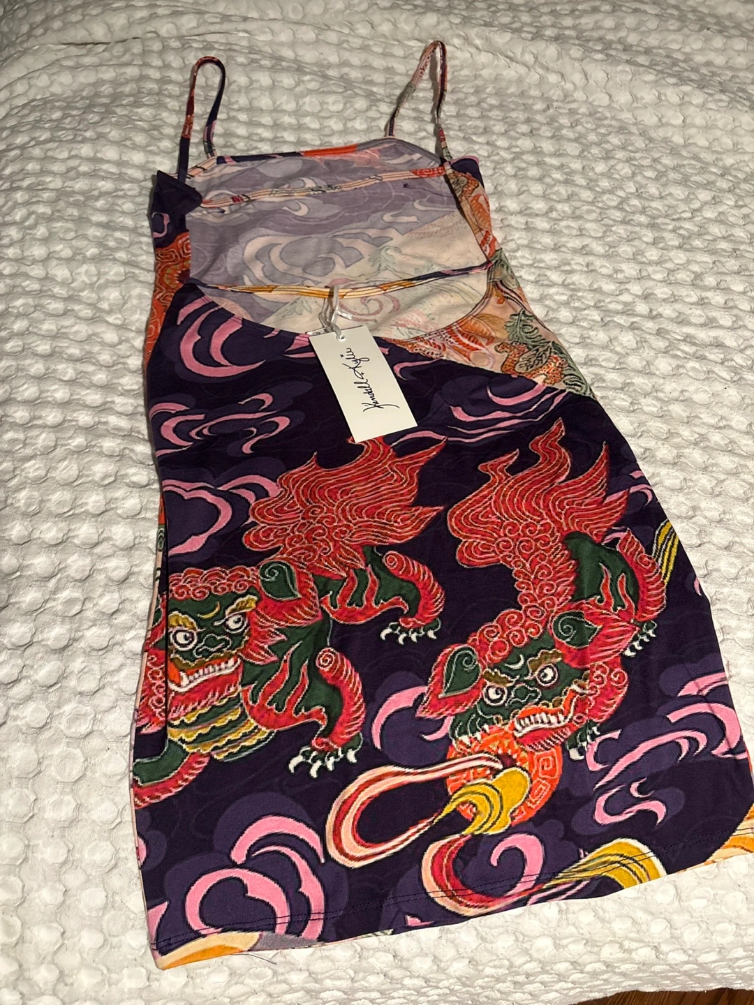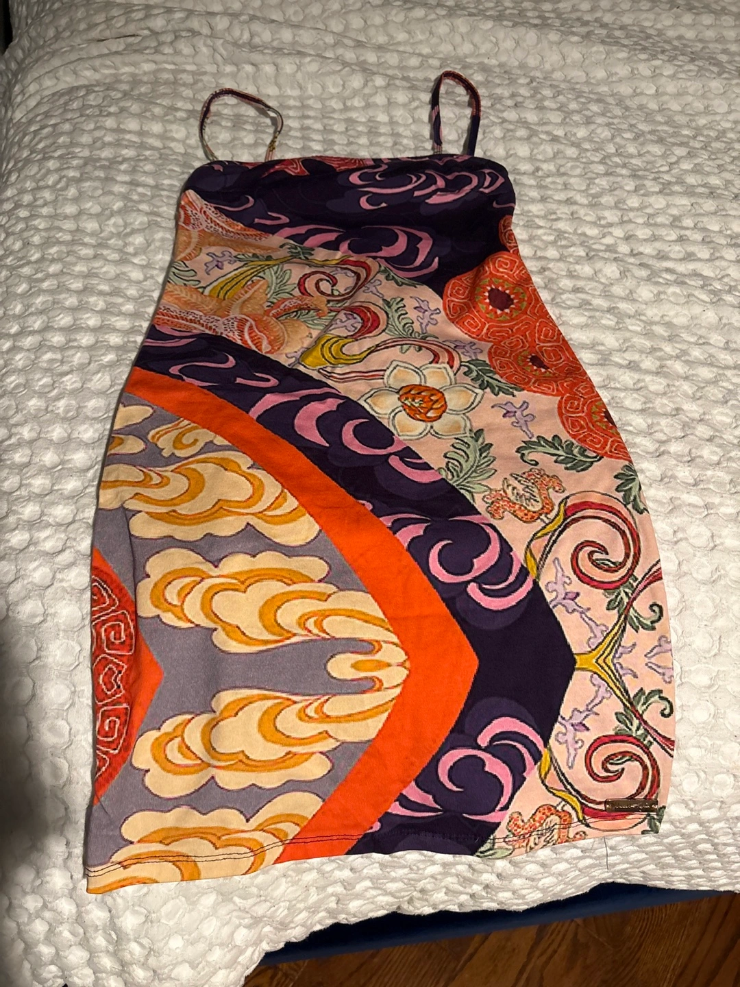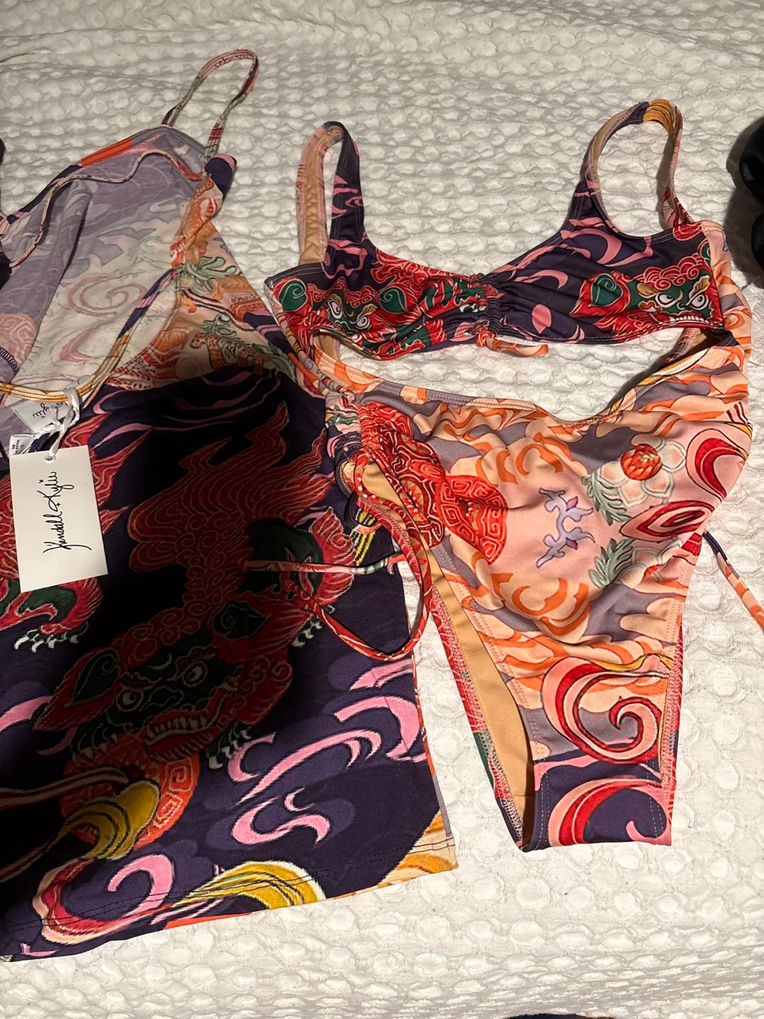 Kendall+Kylie dress and bathing suit set. The set features a unique and vibrant design. Perfect for making a statement! Made in Bulgaria.