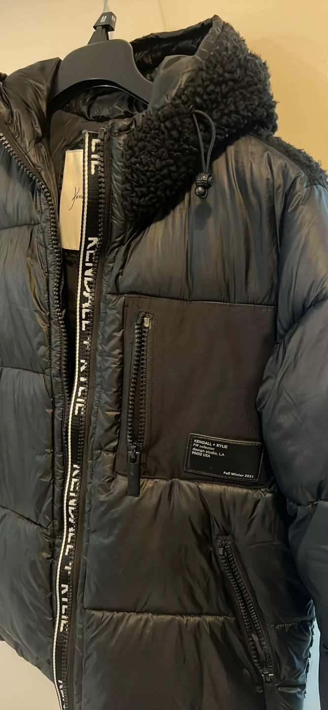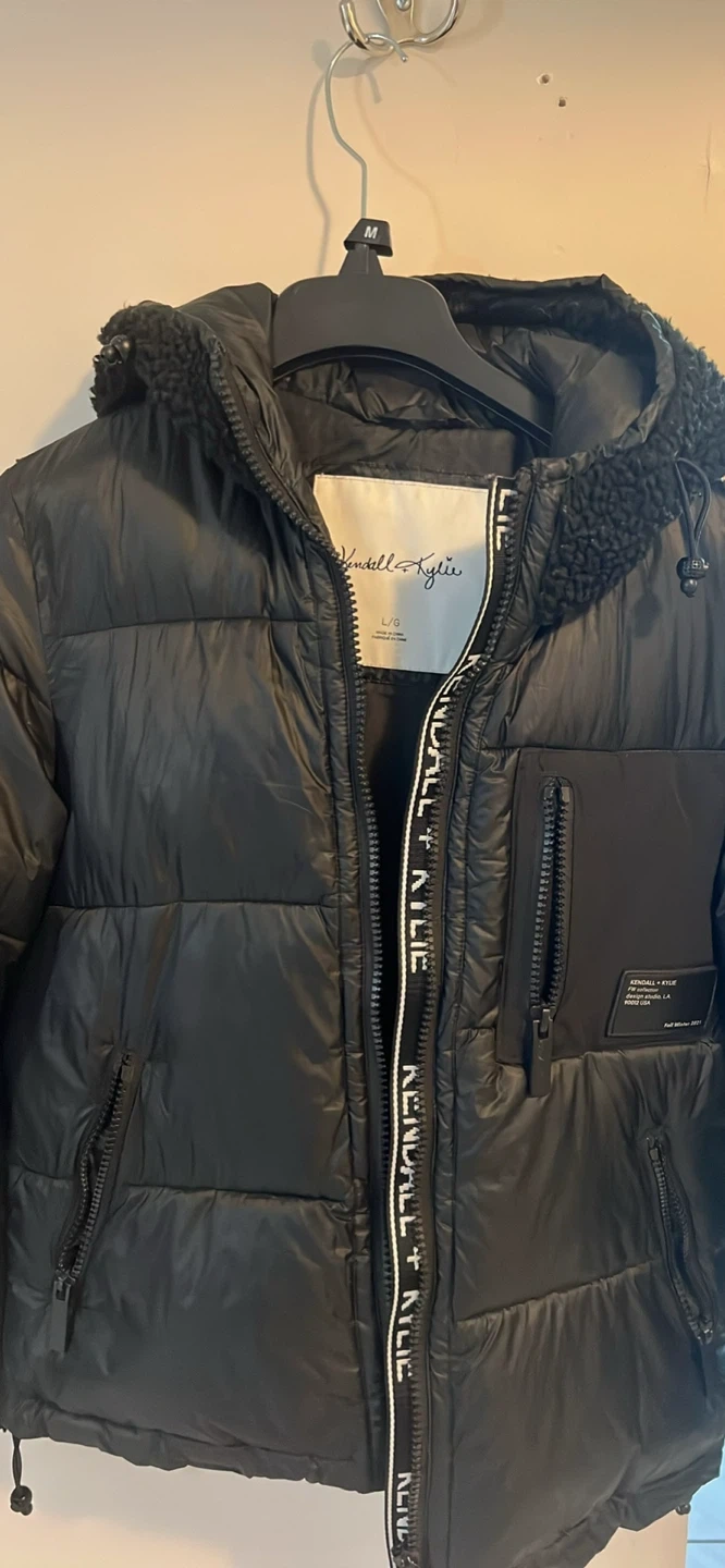 10Selling a Kendall + Kylie puffer jacket in black. It's a size L/G and in great condition. Perfect for keeping warm this winter! It is water resistant. Sherpa fabric back