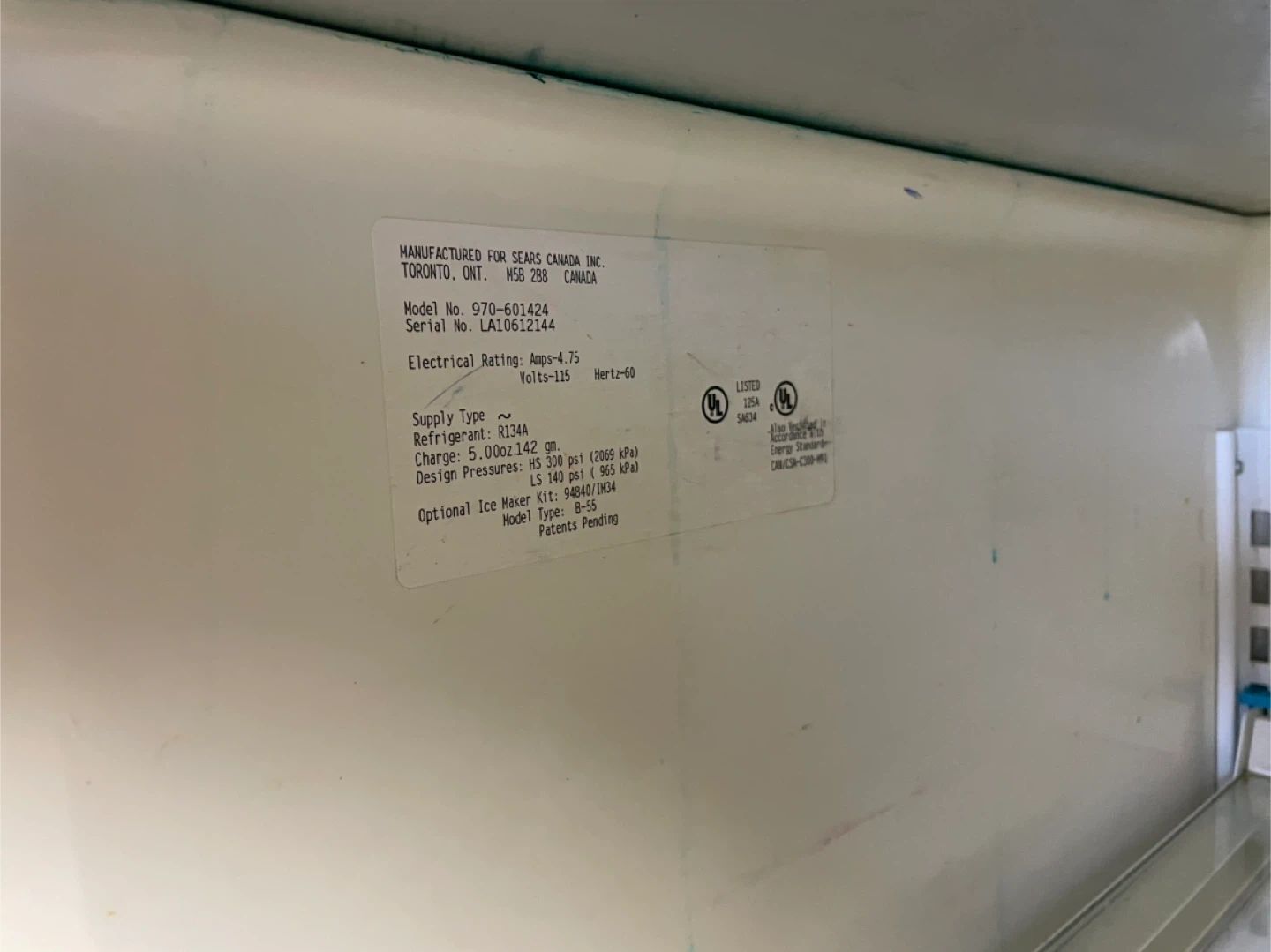 92Selling a Sears Kenmore 31”refrigerator SPARE PARTS. The model number is 970-601424 and the serial number is LA10612144. It operates at 115 volts and 60 hertz. Refrigerant: R134A Each piece is $10 Take them all for good offer