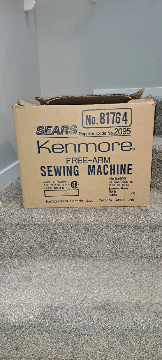 Selling a Kenmore free-arm sewing machine. It comes with the original box and the foot pedal. Great for anyone looking for a reliable machine for their sewing projects. works great. no issues