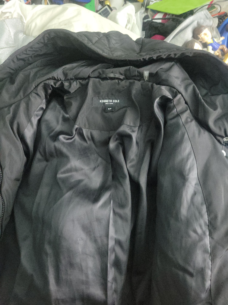 Selling a Kenneth Cole black puffer jacket in size small. It's in great condition and ready for a new home! Perfect for staying warm and stylish during the cooler months. The jacket is lightweight and comfortable, making it ideal for everyday wear
