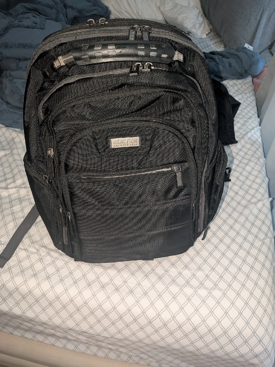 10Kenneth Cole Reaction black backpack in great condition! Perfect for school, work, or travel. Lots of pockets and compartments to keep you organized