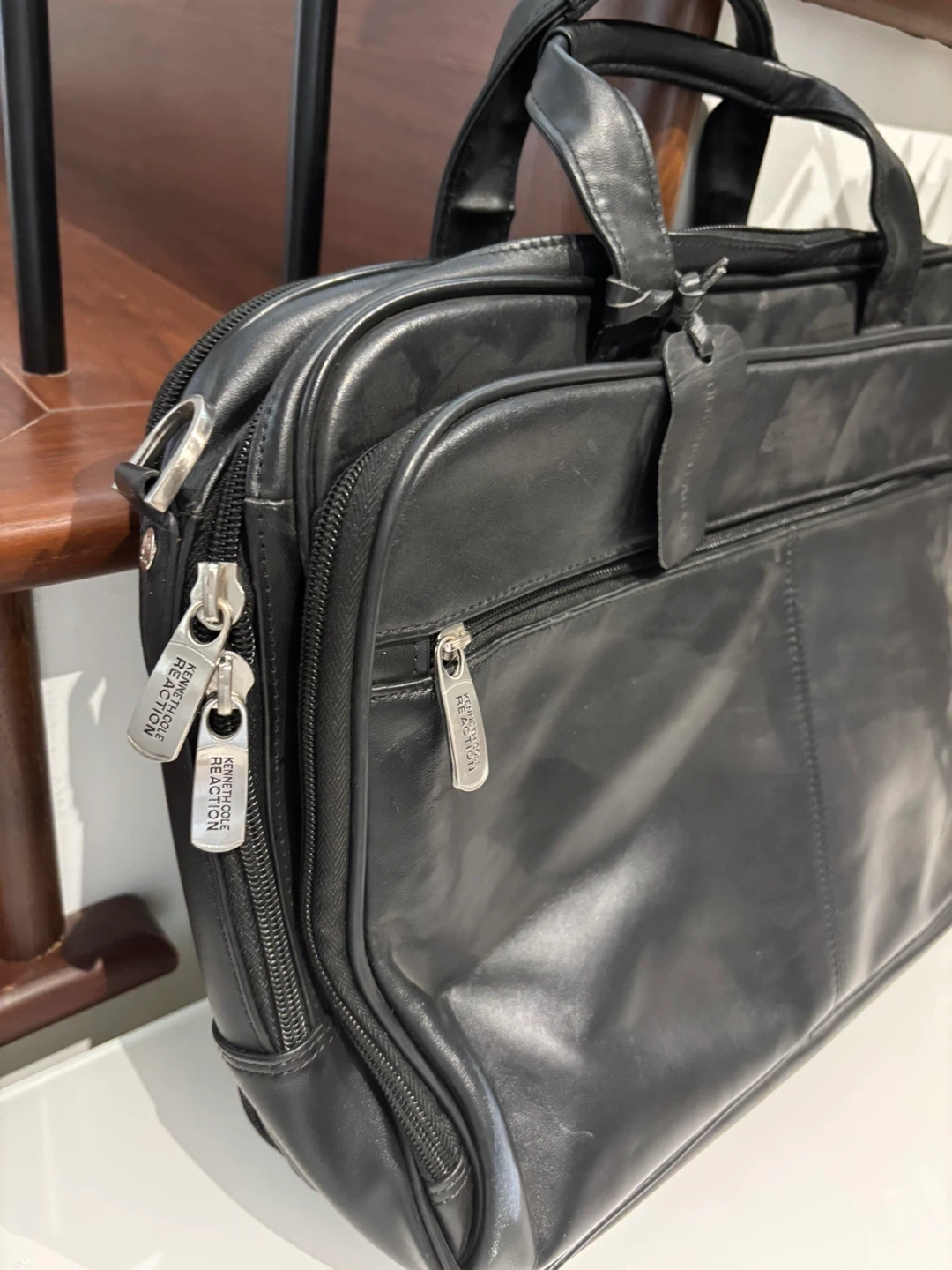 29This is a Kenneth Cole Reaction briefcase. It's made of black leather and is in like new condition (just missing a long strap. Handle hand carry). It's perfect for carrying your laptop and other work essentials! Lots of secure pockets and compartments. Pick up North Burnaby. Thank you.