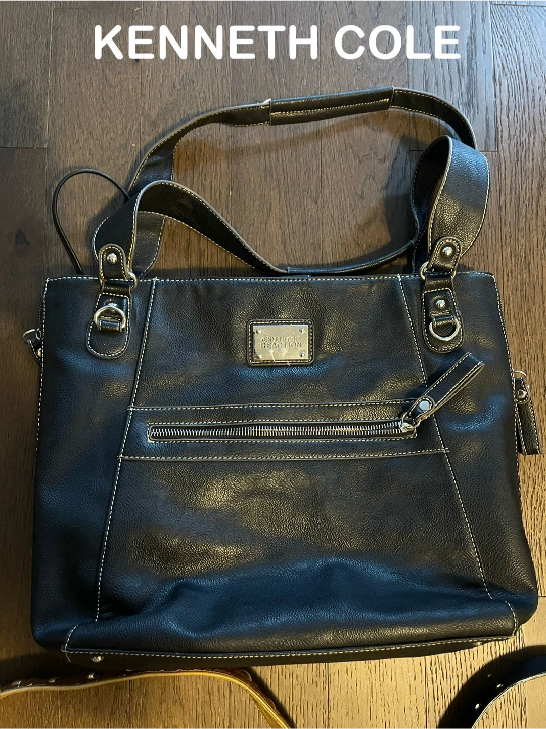 Selling a Kenneth Cole Reaction tote bag in black. It's in great shape and perfect for everyday use! The bag features a zipper on the front.