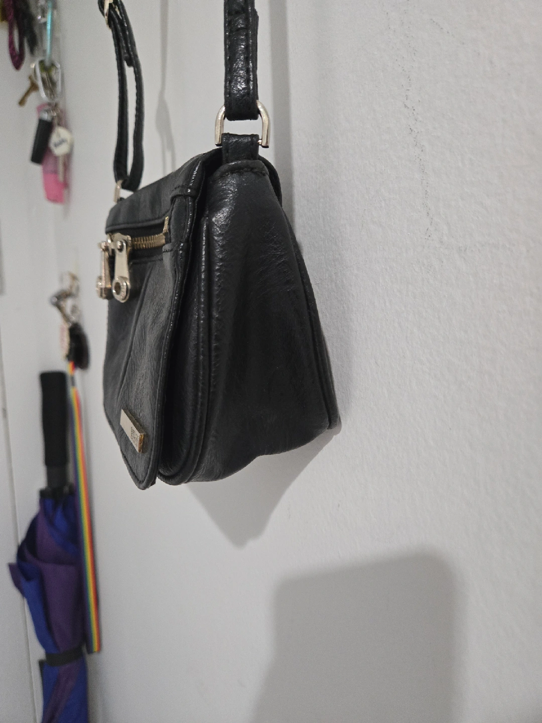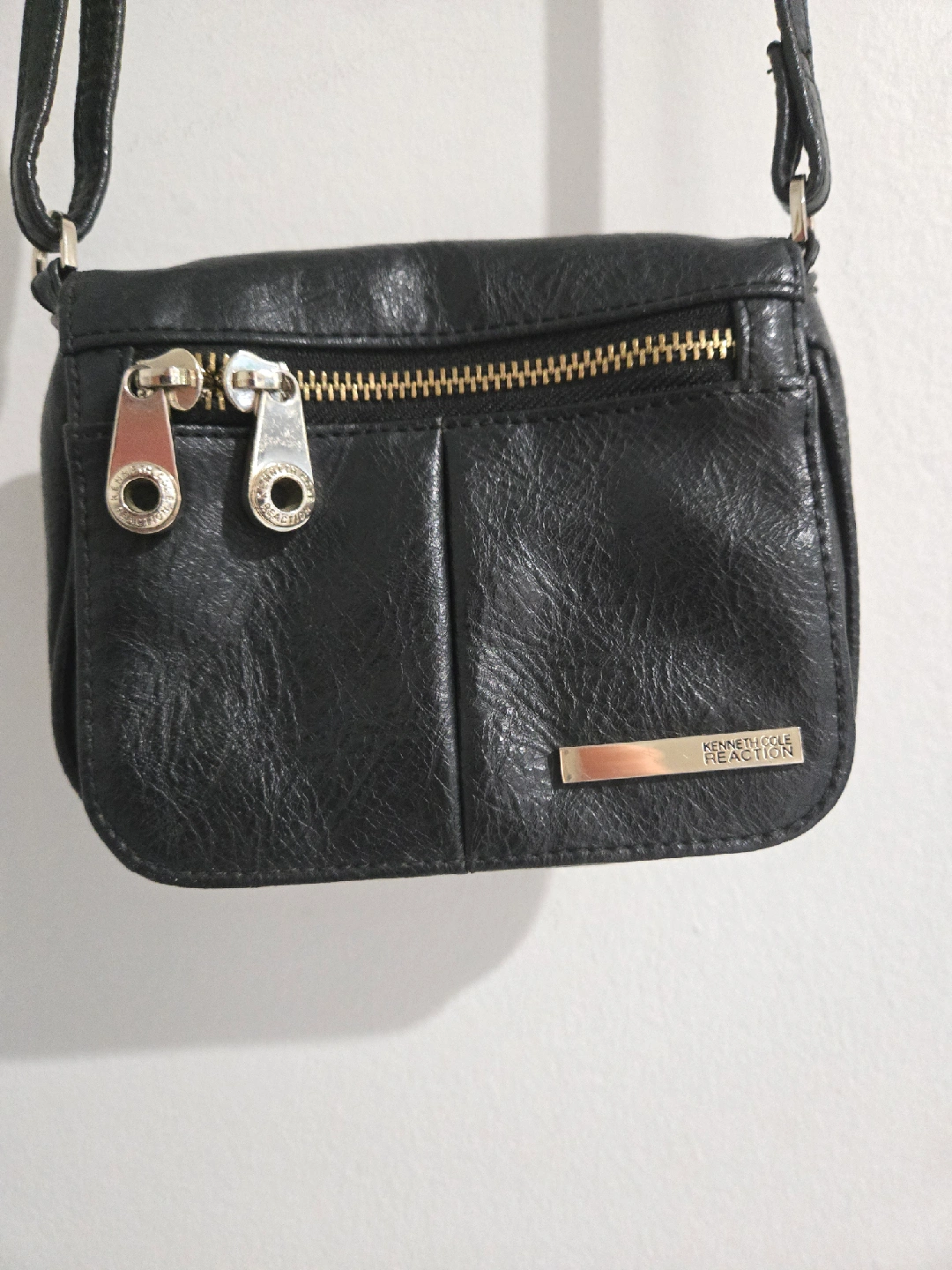 92This is a Kenneth Cole Reaction black crossbody bag. It's a stylish and compact bag, perfect for carrying your essentials while on the go or for a night out.The bag features a sleek design with a zipper on top.