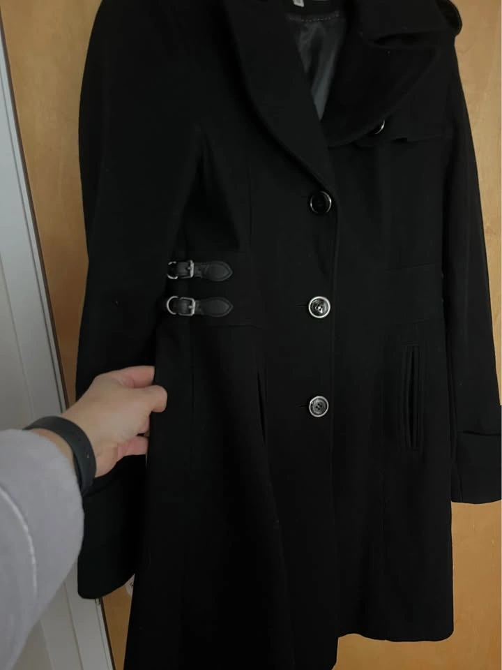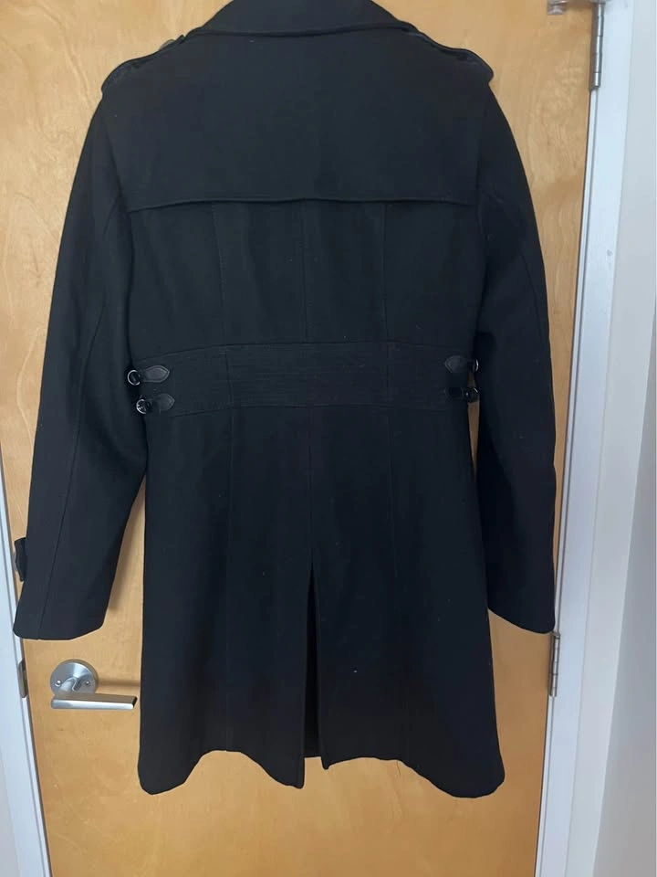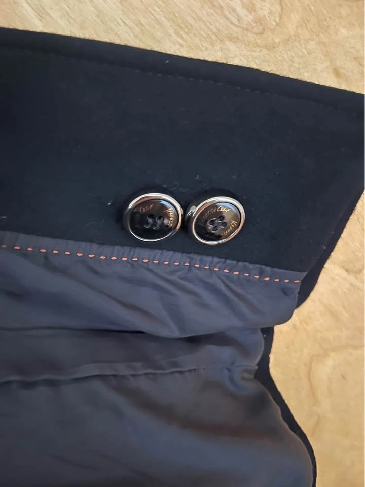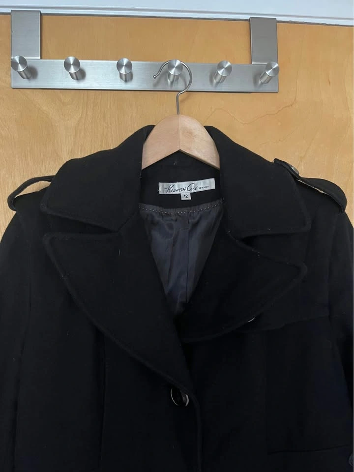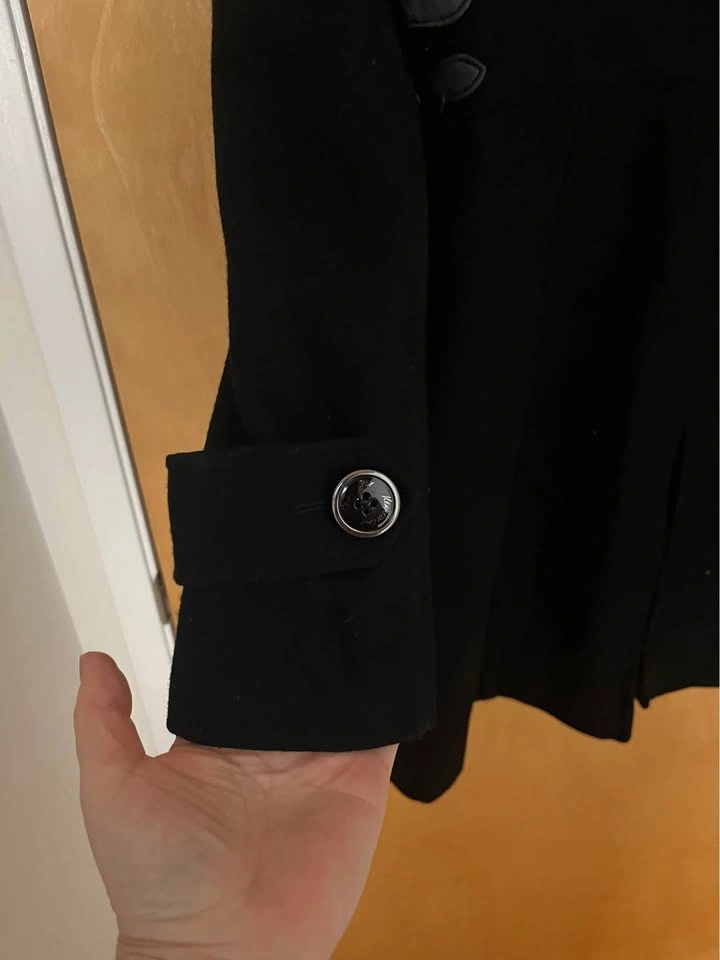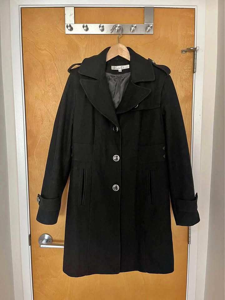 0Very flattering wool coat Sz 12 (10). Fully lined and extra buttons. Fits small like 10 imo. Pick up central Lonsdale north van