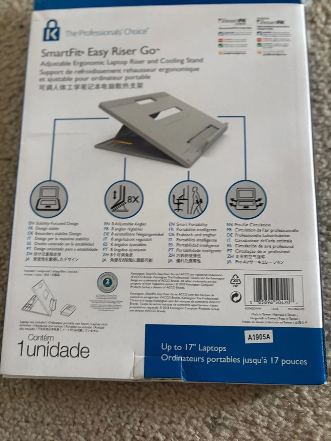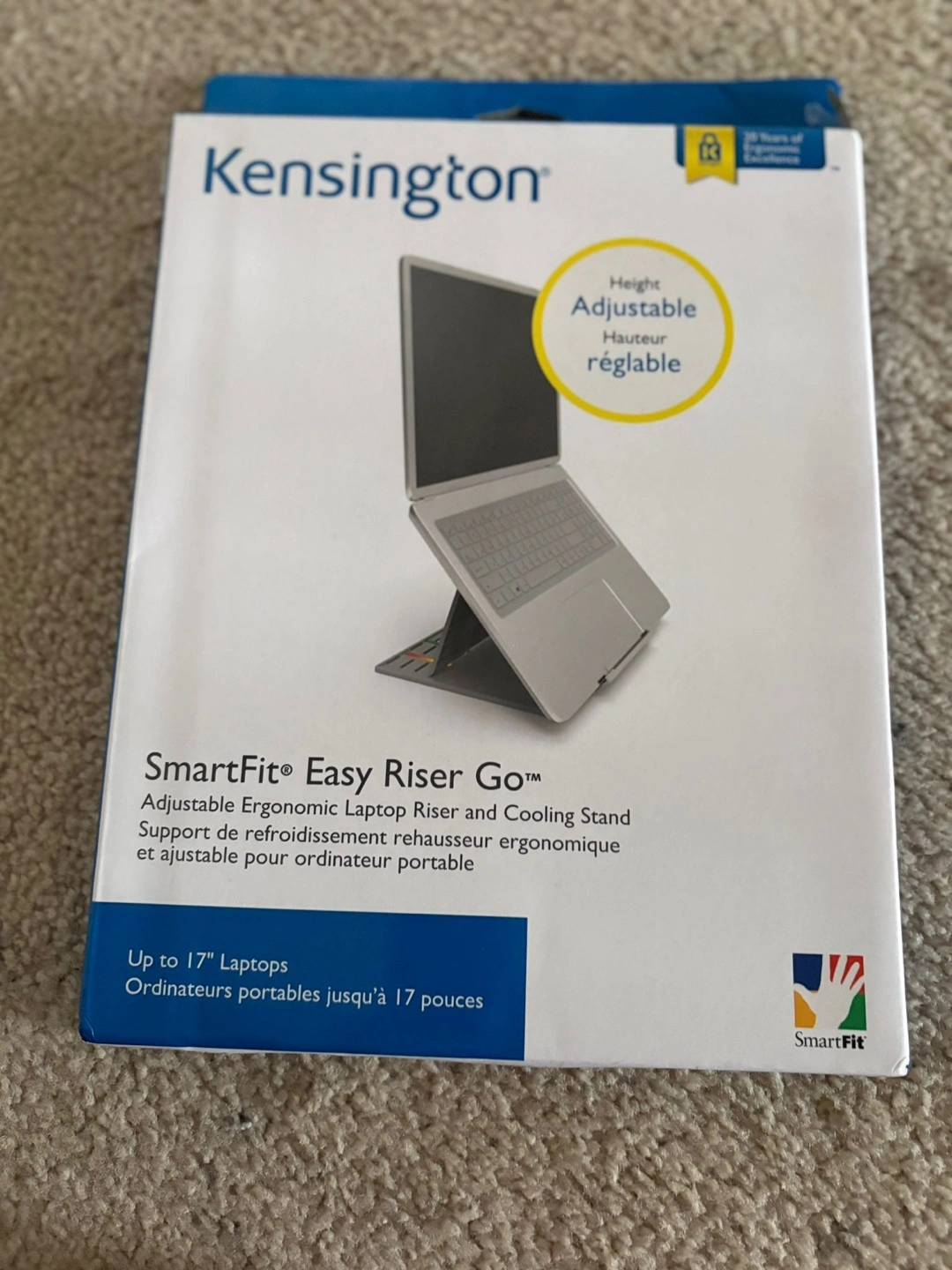 I'm selling a Kensington SmartFit Easy Riser Go adjustable ergonomic laptop riser and cooling stand! It supports laptops up to 17 inches. This is a great support for portable computer users