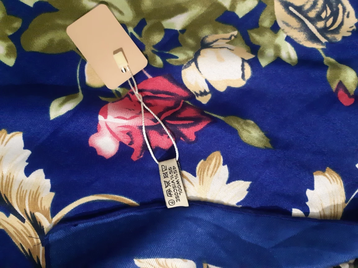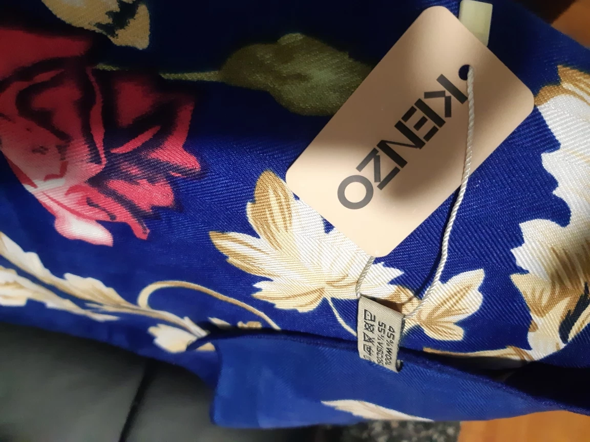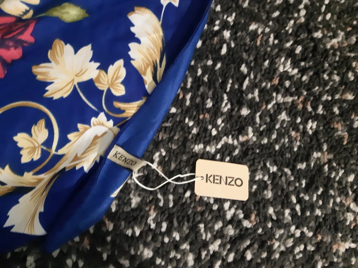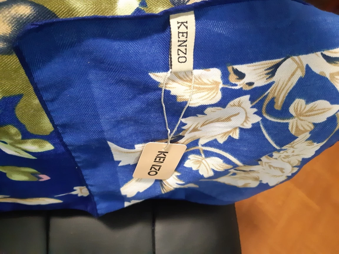 101Beautiful Kenzo scarf. Features a vibrant blue background with a floral pattern. Soft and luxurious feel. Perfect for adding a touch of elegance to any outfit.