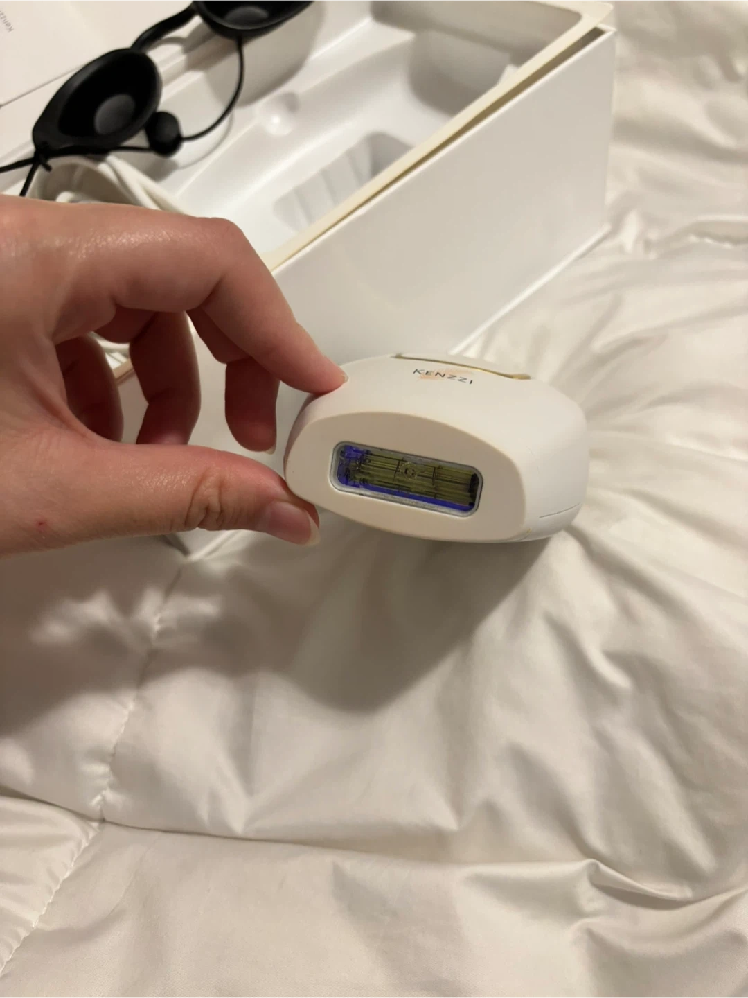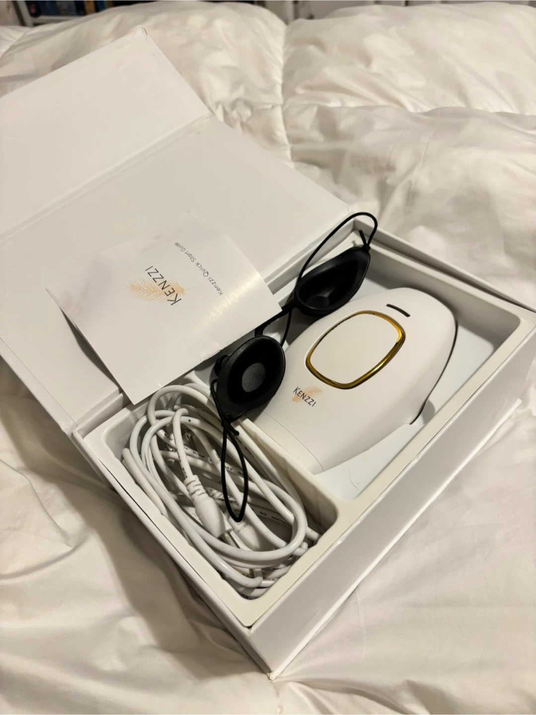 I'm selling a KENZZI The Premium IPL Handset. It comes with the box and all items originally included in the box, plus the eyepatch protection I bought separately. It's in great condition. I've used it very little, it gave good results when I was consistent but as I am not consistent anymore I have decided to finally sell it.
