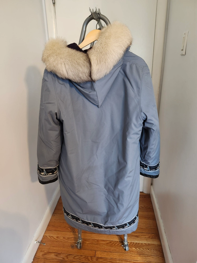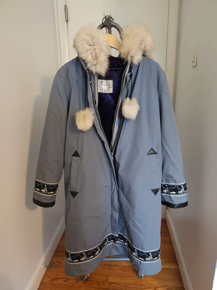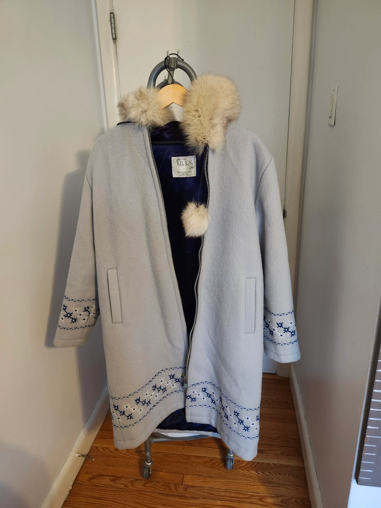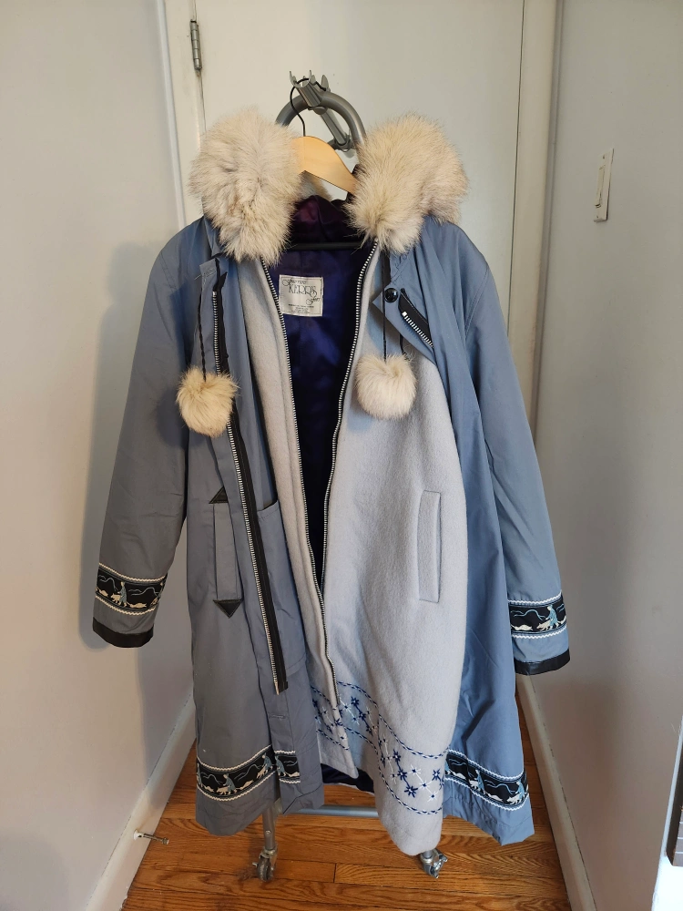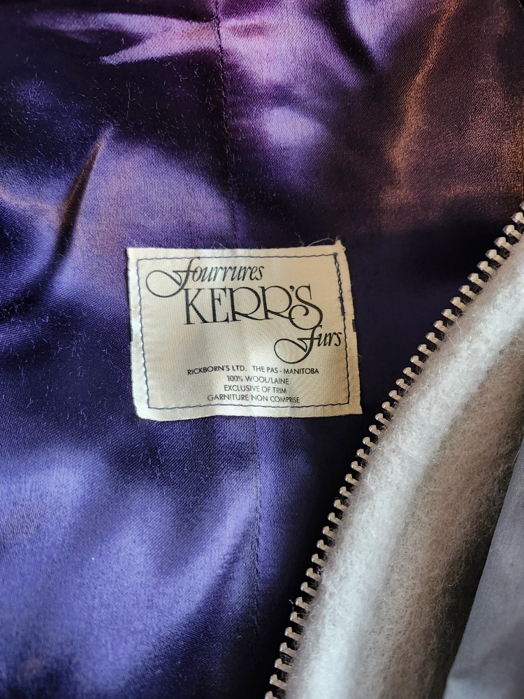 10Barely worn, Manitoba made Kerr's Fur parka. Outside shell is a grey/blue with the inner piece a light grey, inside lining a deep purple. Pick up in Selkirk. $425 OBO