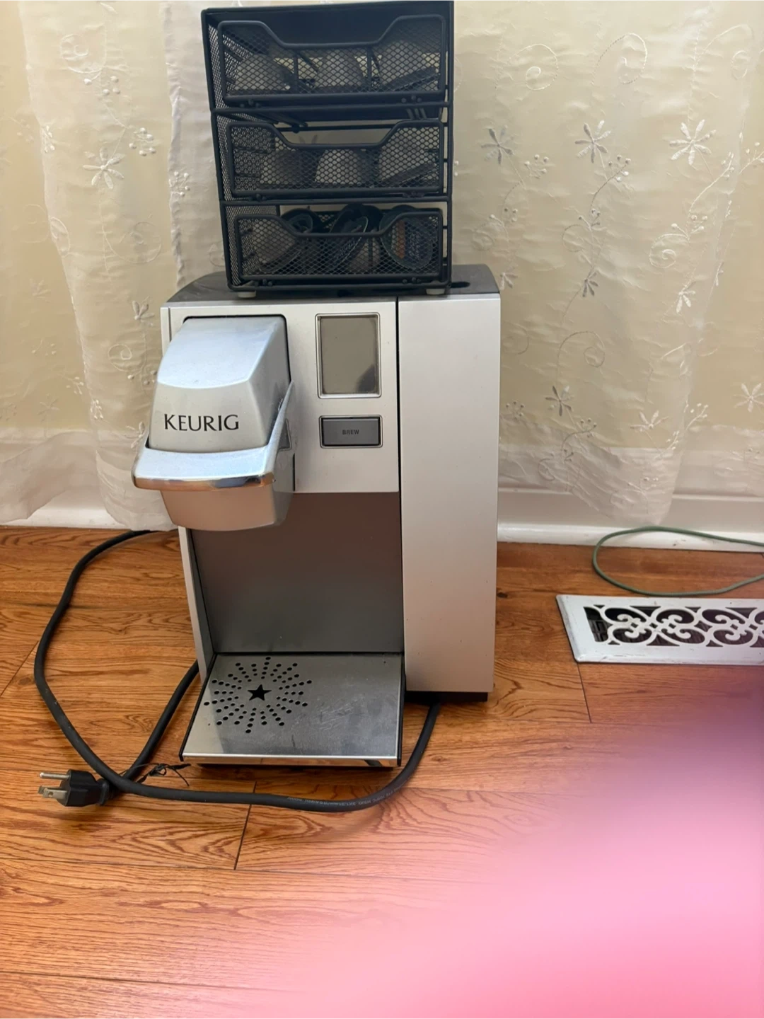 65Selling a Keurig coffee maker that's perfect for brewing your favourite single-serve coffee! It comes with a handy K-Cup holder to keep your pods organized and within reach. It's in good working condition and ready for a new home