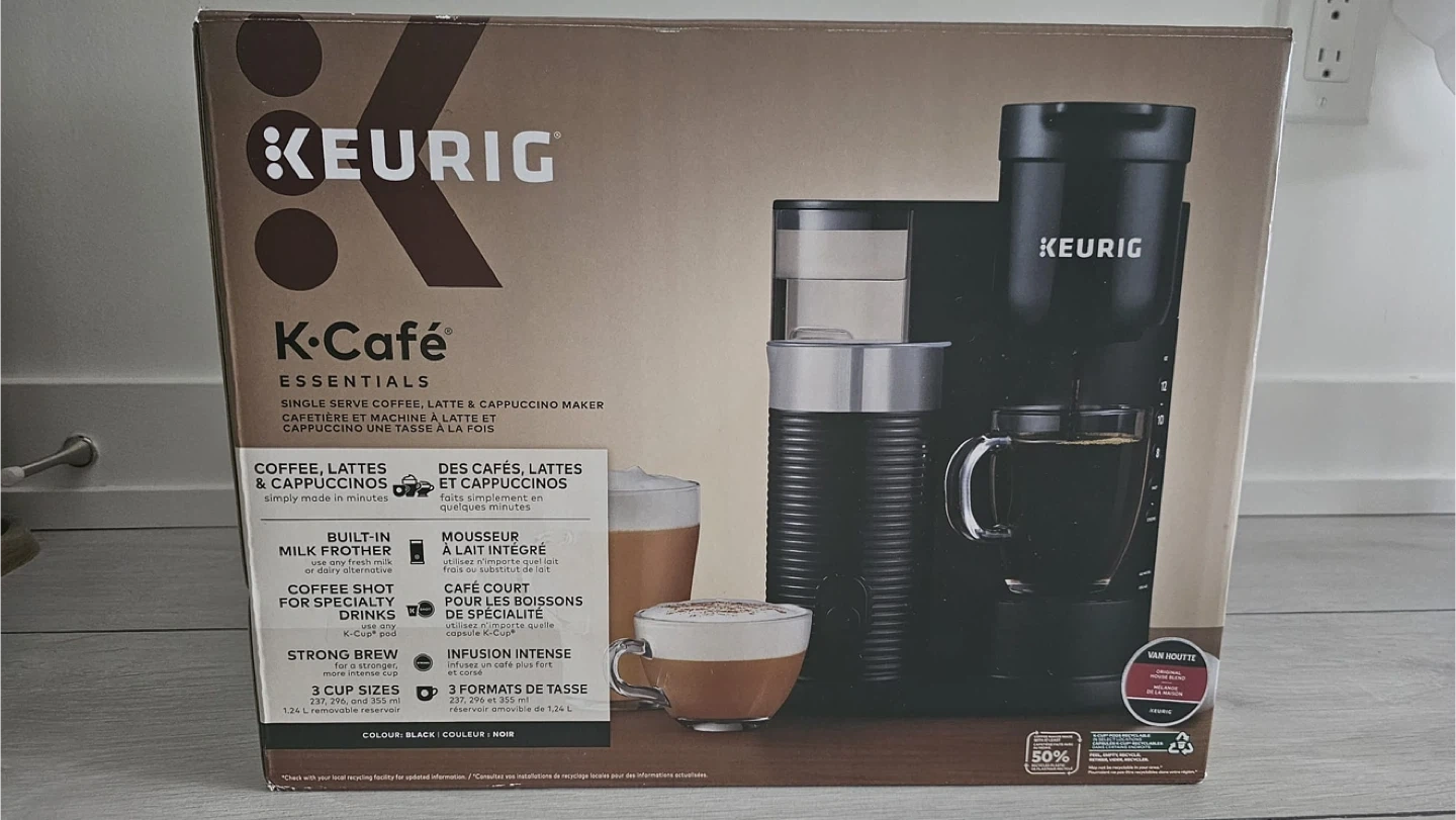 Brand new Keurig. It has a milk frother, a coffee shot option for specialty drinks, and a strong brew setting for a more intense cup. You can choose from 3 cup sizes: 237, 296, and 355 ml. The removable reservoir holds 1.24 L. Colour: Black