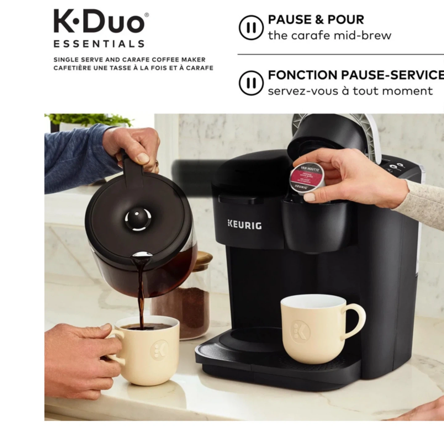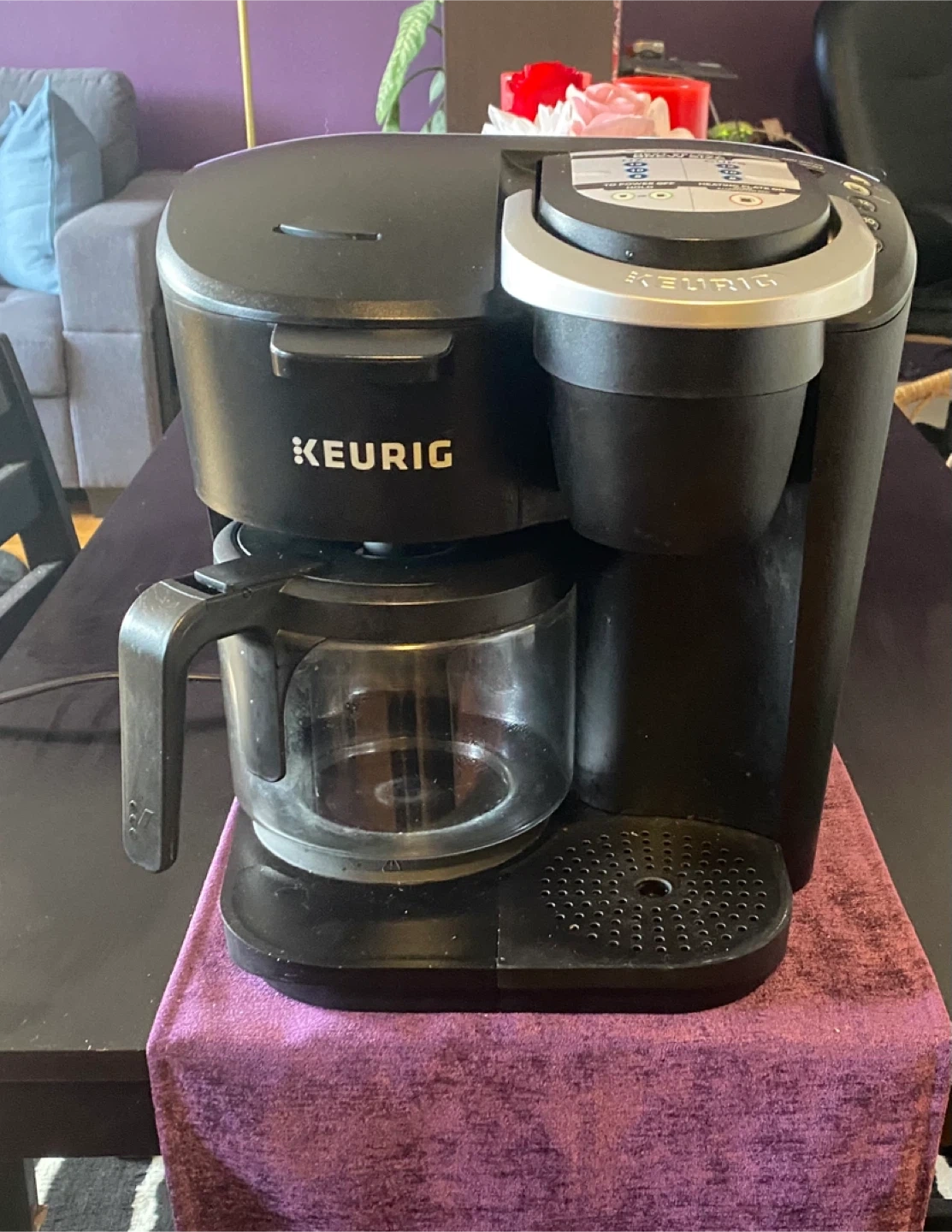 65I'm selling a Keurig K-Duo Essentials single serve and carafe coffee maker! It allows you to pause & pour the carafe mid-brew. It also has a function to pause service at any time. It's in great condition and ready for a new home! It also comes with free reusable Keurig pods, and coffee filter/scoop.