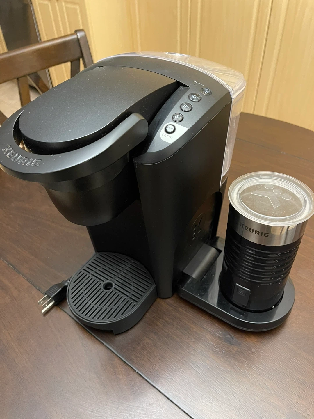 65Selling a Keurig K-Latte single-serve coffee maker and milk frother.