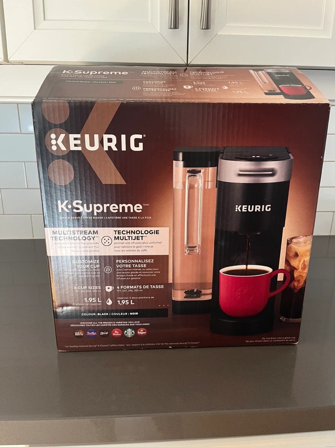 Pick up in Utopia. Selling a Keurig K-Supreme Coffee maker - black. It's in good shape and comes with the My K-Cup Universal Coffee Filter so you can use your own ground coffee. Brew sizes include 6, 8, 10, and 12 oz. Just descaled the Keurig so ready for brewing coffee.