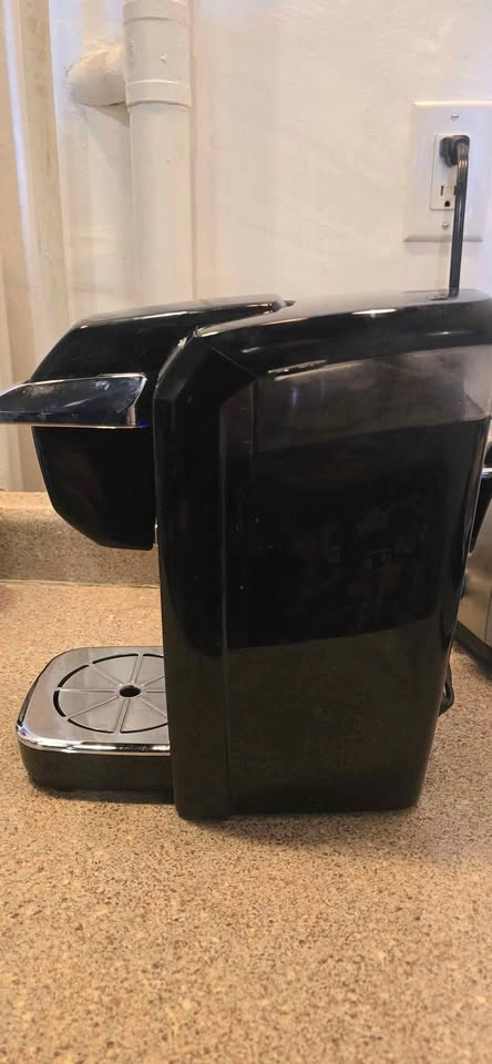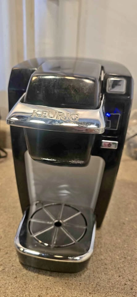 65Keurig K10 K-Cup Black Single Cup Coffee and Tea Brewing System. Has basket for tea or loose coffee grounds. Enjoy a delicious hot beverage in approximately 2 minutes with this single-cup mini brewer that features an auto-off feature that turns the unit off when the brewing cycle is complete. Small footprint, big flavor. Brewing one cup at a time, this mini machine is perfect for small spaces, like dorms, apartments and city dwellings. The fast worker fills your cup in under 2 minutes with a bold, gourmet brew and features a sensor that prevents brewing if a cup is not in place. Brand: Keurig Type: Single cup brewer Color: Black Style: Modern, contemporary, compact Cup size options: 6, 8, or 10 ounces Wattage: 1425 watts Capacity: 10 ounces Brews in under two minutes Settings: Auto off Display: LED indicator guides you through each brew Removable drip tray Cord storage 1,425 watts and 120VAC/60Hz Model: K10 Dimensions: 10.8 inches high x 6.9 inches wide x 10.7 inches deep Weight: 9 pounds