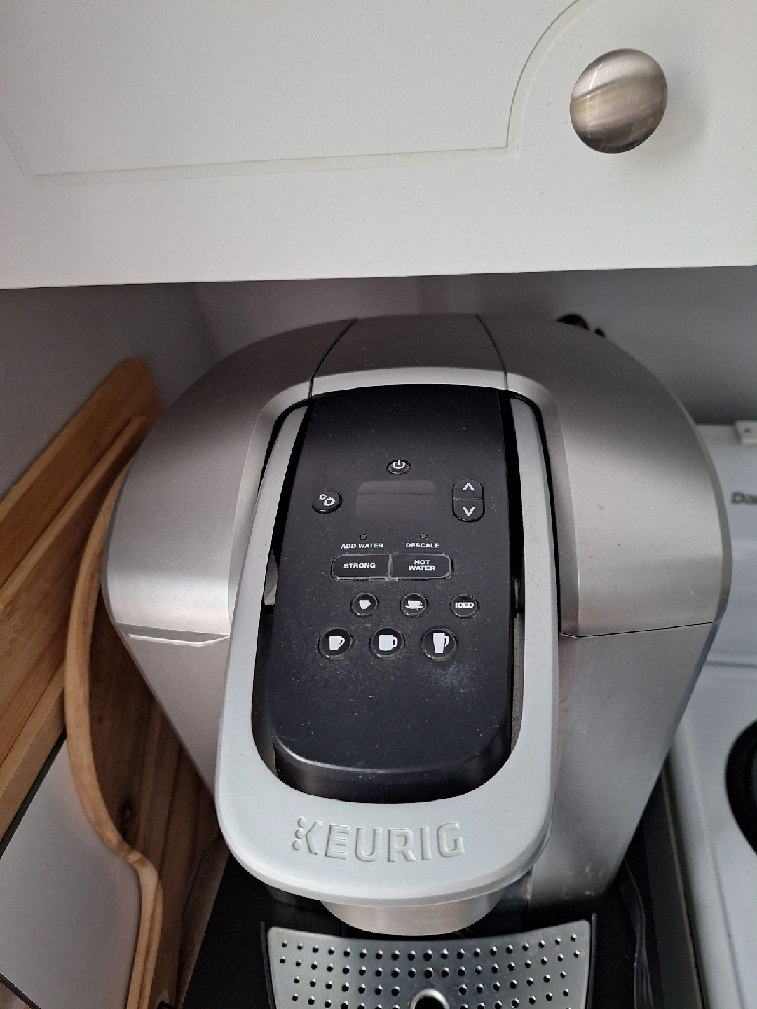 Selling a Keurig single cup coffee maker. It's perfect for quickly brewing a single cup of coffee in the morning. It has settings for different cup sizes and even an iced coffee option. It's in good working condition and ready for a new home!