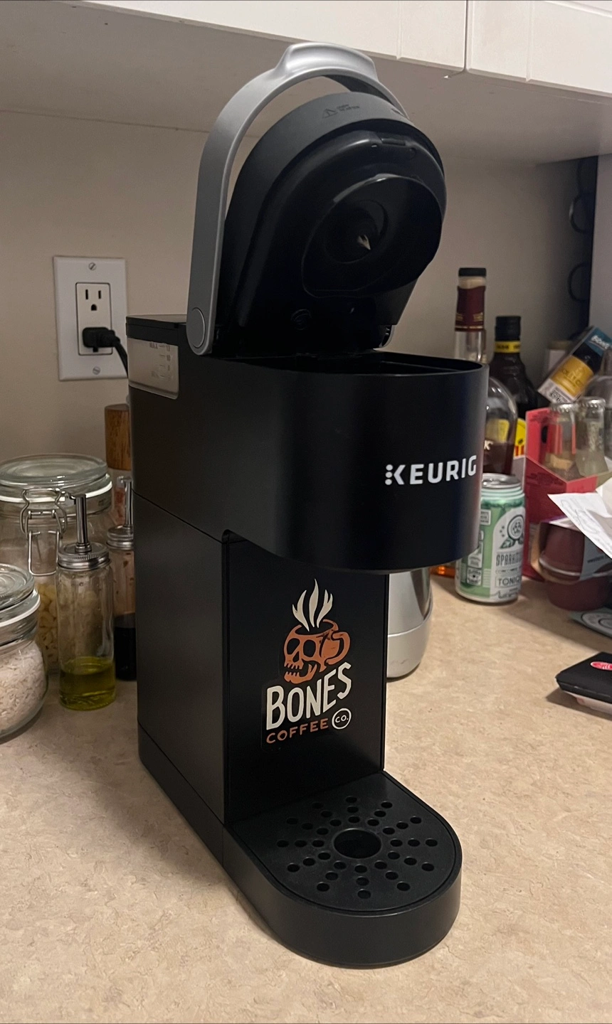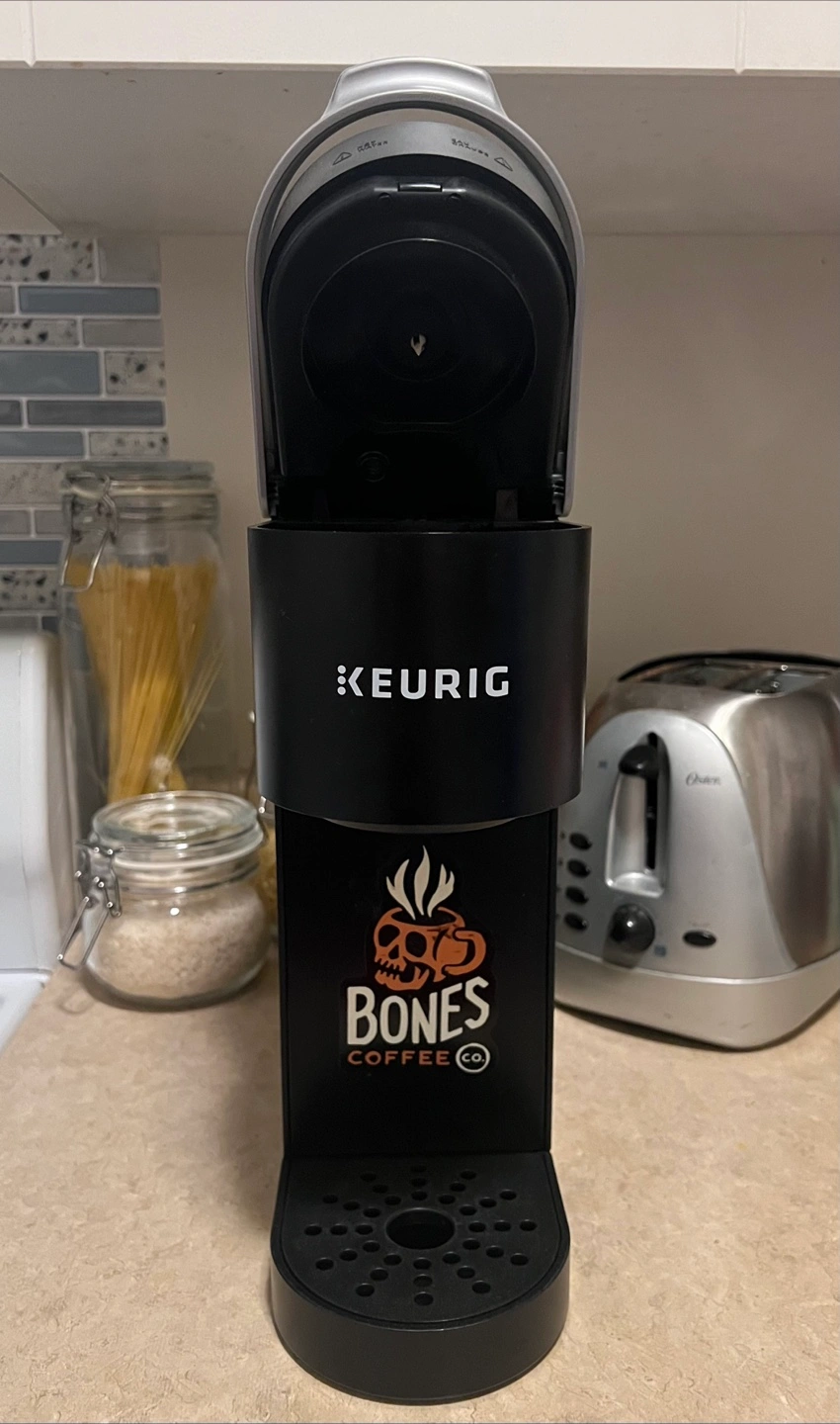 75Selling a lightly used Keurig single-serve coffee maker. (There’s a Bones Coffee sticker on it, which looks fun, but you can try to remove if you’d like.) It's clean, in great shape, and ready to brew your favourite cup! Great for fitting in narrow spaces: 31 cm high x 12 cm wide x 29 cm deep. (12” high x 5” wide x 11” deep)