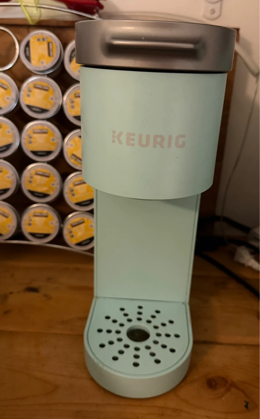 76Selling a Keurig single serve coffee maker in a nice mint green colour. It's perfect for making a quick cup of coffee in the morning!