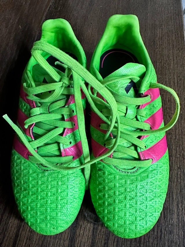 Score big with these Adidas cleats! These are in used condition, as shown in the photos. Perfect for young soccer stars ready to light up the field. I'm selling them as they've been outgrown, but they still have plenty of games left in them. Cash accepted.