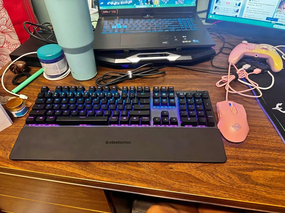 Keyboard Apex 5 and a pink gaming mouse
