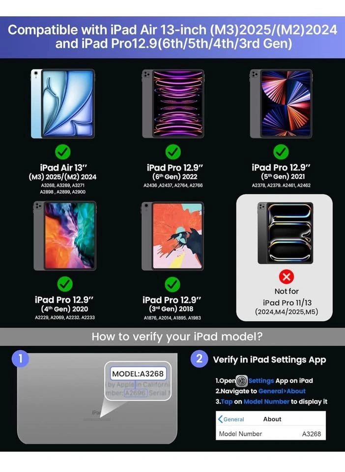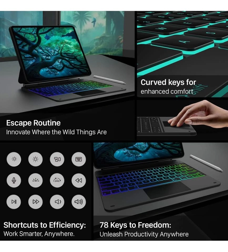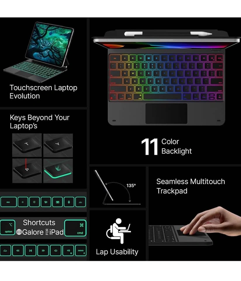 94Brand new in box Pickup Location @ East York, Toronto Keyboard Case for iPad Air 13(M3 2025 / M2 2024) and iPad Pro 12.9 (6th, 5th, 4th, 3rd Gen),Magic Keyboard for iPad Pro 12.9,Keyboard Case with Multi-Touch Trackpad, 11 Colors Backlight,Black ๐๐ผ๐บ๐ฝ๐ฎ๐๐ถ๐ฏ๐ถ๐น๐ถ๐๐: Elevate your iPad Air 13 inch (M3 2025 / M2 2024) or iPad Pro 12.9 experience with our versatile keyboard case. Compatible with iPad Air 13 inch (M3 2025 / M2 2024),iPad Pro 12.9 ( 6th/5th/4th/3rd gen), models include 2024 Air 13 inch(A2898 , A2899, A2900),2022 12.9 inch Pro 6th Gen(A2436 ,A2437, A2764, A2766); 2021 12.9 inch Pro 5th Generation (A2378, A2379, A2461, A2462); 2020 12.9 inch Pro 4th Generation (A2229, A2069, A2232, A2233); 2018 12.9 inch Pro 3rd Generation (A1876, A2014, A1895, A1983).NOTE:NOT FIT FOR IPAD PRO 13(M4) 2024,