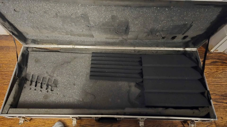 154 latch flight case 40" L 15" W 4.5" H on the inside 6" H on the outside