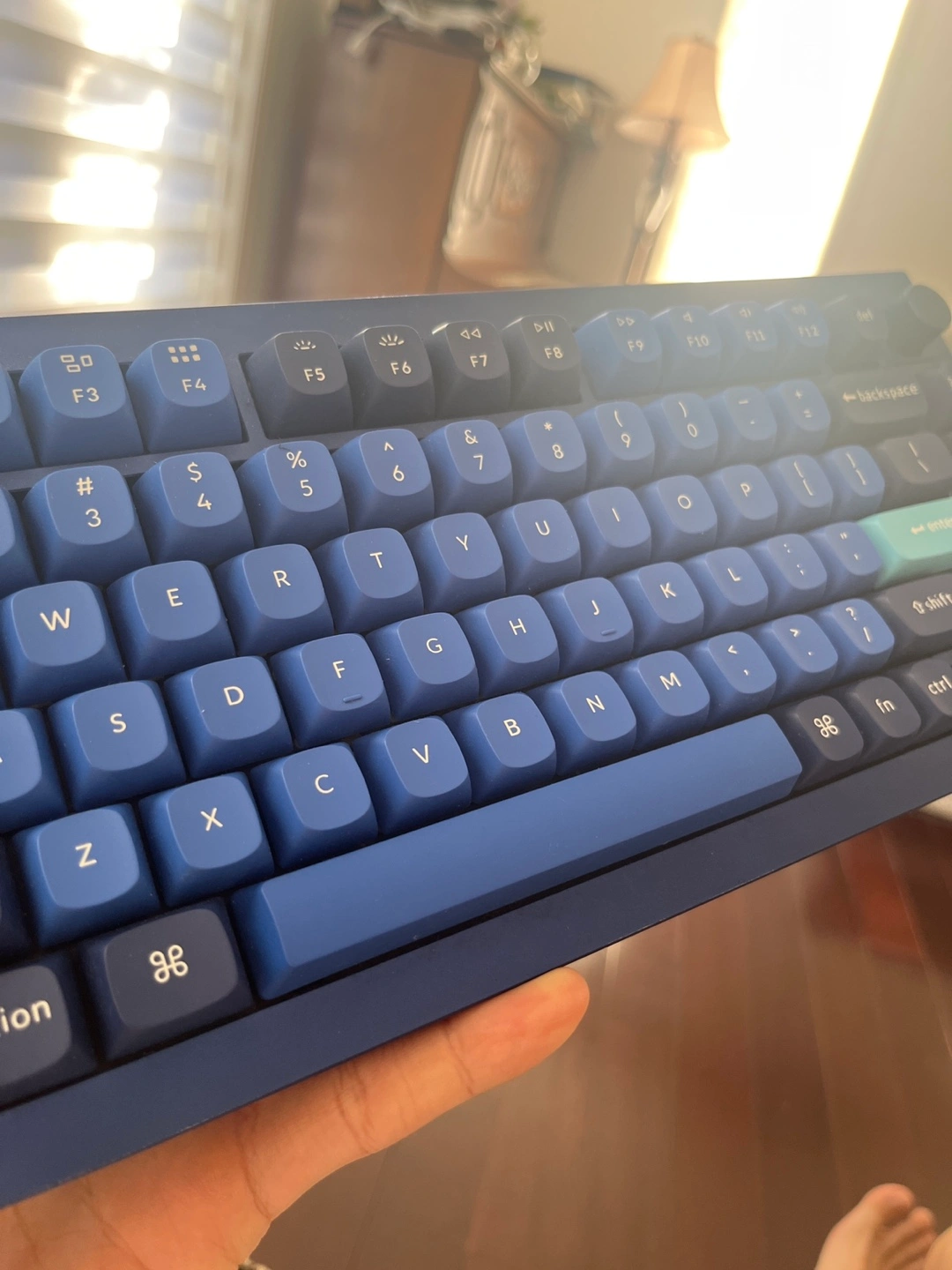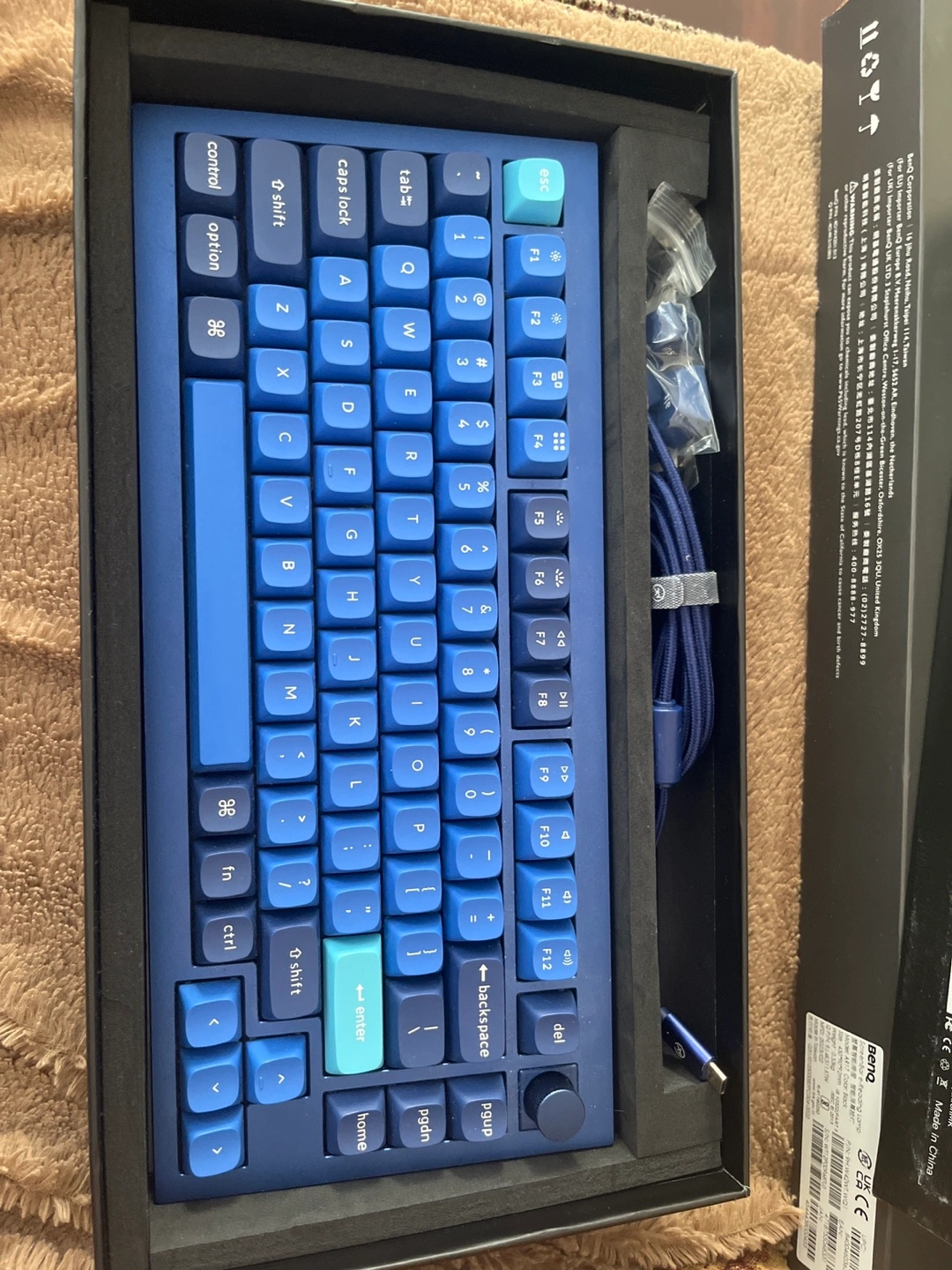 Selling a Keychron Q1 Pro keyboard in blue! It’s in excellent condition, almost new. The switches it uses are red—meaning linear. Also, this is Keychron’s top model: the container on which the keys lay is metal; there is also a knob which you can adjust, to increase or decrease the volume. Also, this is 50% off.
