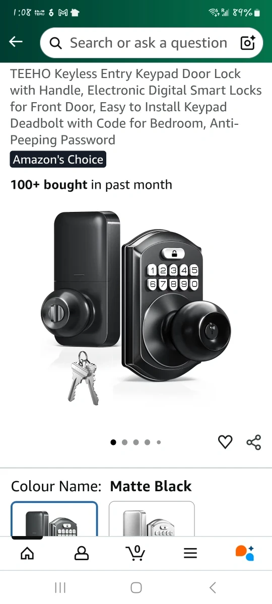85Selling a TEEHO keyless entry keypad door lock in matte black. It's an electronic digital smart lock with a handle, easy to install on any front door. It comes with a keypad deadbolt with code for bedroom, anti-peeping password. Location: Taunton and Townline Check out my other listings